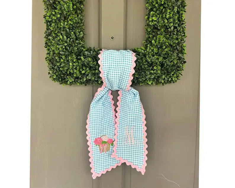 "Elegant Embroidered Wreath Sash – A Charming Touch for Your Front Door