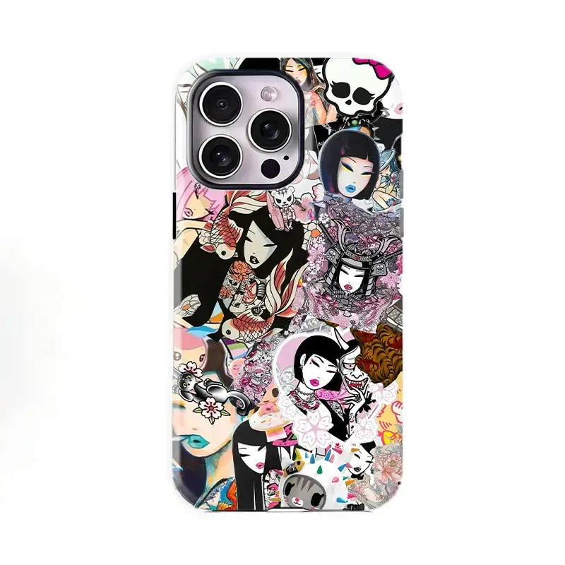 Tokidoki Collage Art Phone Case, Y2K Colorful Trendy Graffiti Anti-drop Protective Case, Subculture Personalized Style for iPhone 17 16 15 14 13 12 11