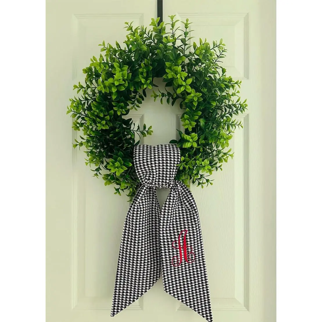 5. University Monogrammed Black Houndstooth Wreath Sash For Front Door - Personalized Embroidered Alabama Home Decor