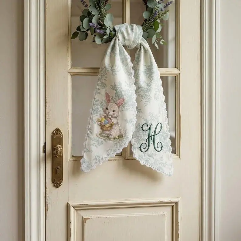 "Elegant Embroidered Wreath Sash – A Charming Touch for Your Front Door
