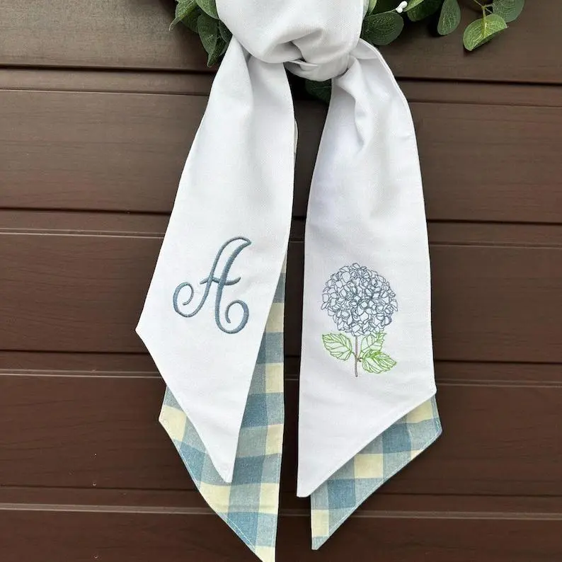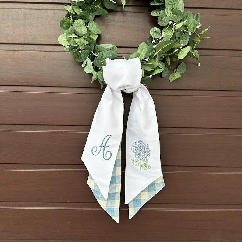 "Elegant Embroidered Wreath Sash – A Charming Touch for Your Front Door
