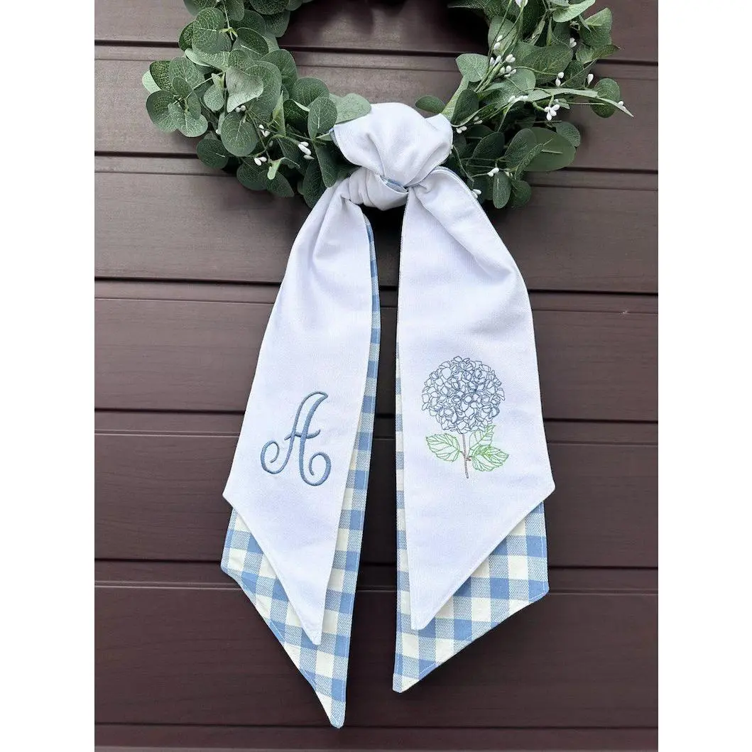 Personalized Wreath Sash Hydrangea, Spring Summer Wreath Decor, Mothers Day Gift, Custom Embroidery Sash, Realtor Gift, New Home Gift