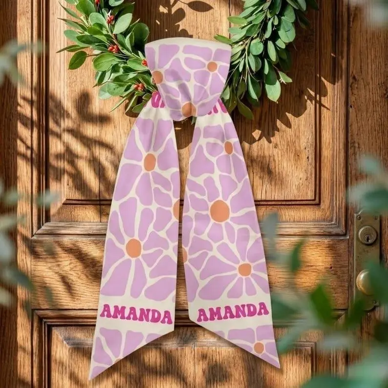 Personalized Name Wreath Sash Door, Custom Floral Wreath Sash, Pink Flower Door Wreath Bow, Spring Front Door Decor, Custom Name Door Decor