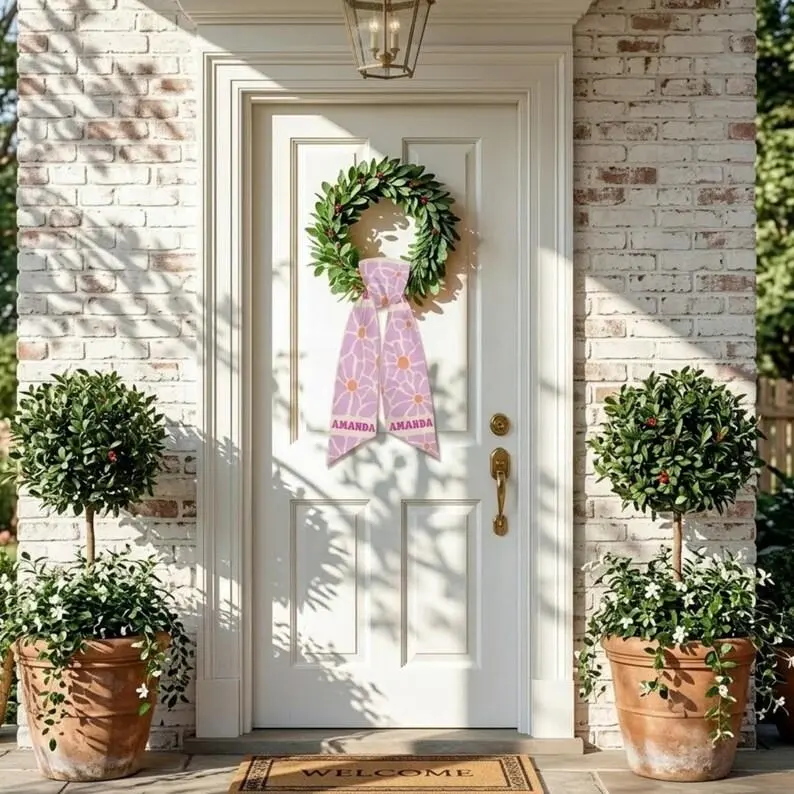 Make your front door stand out with a charming wreath sash that adds personality and elegance to any home."