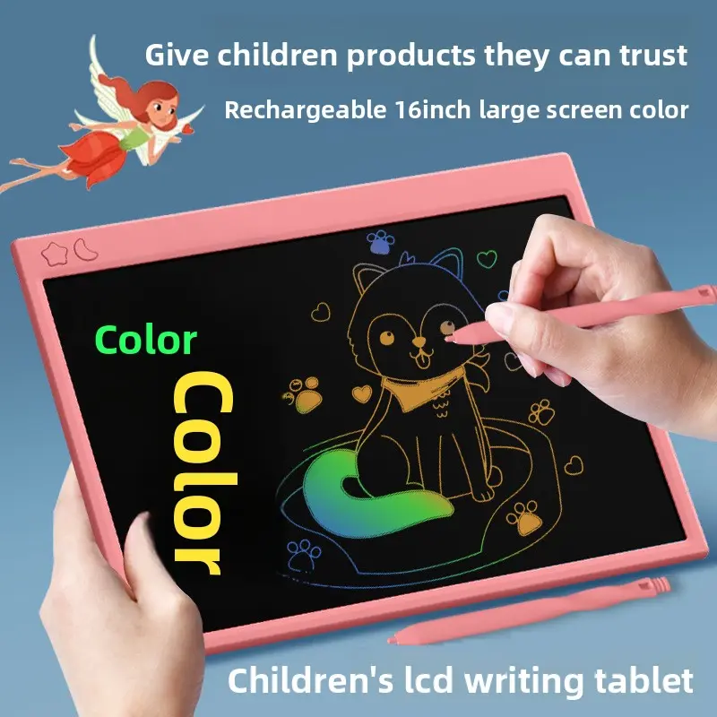 ·Large 16-inch colorful LCD writing tablet—rechargeable for eco-friendly, cordless use