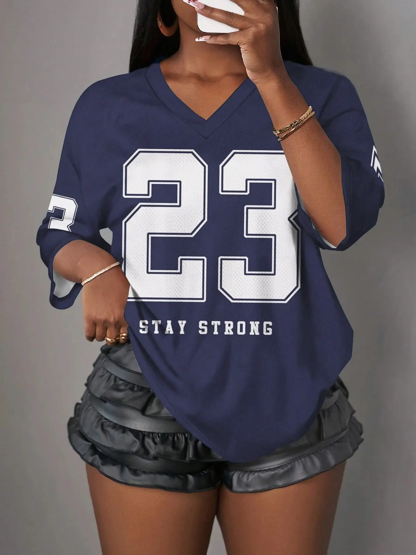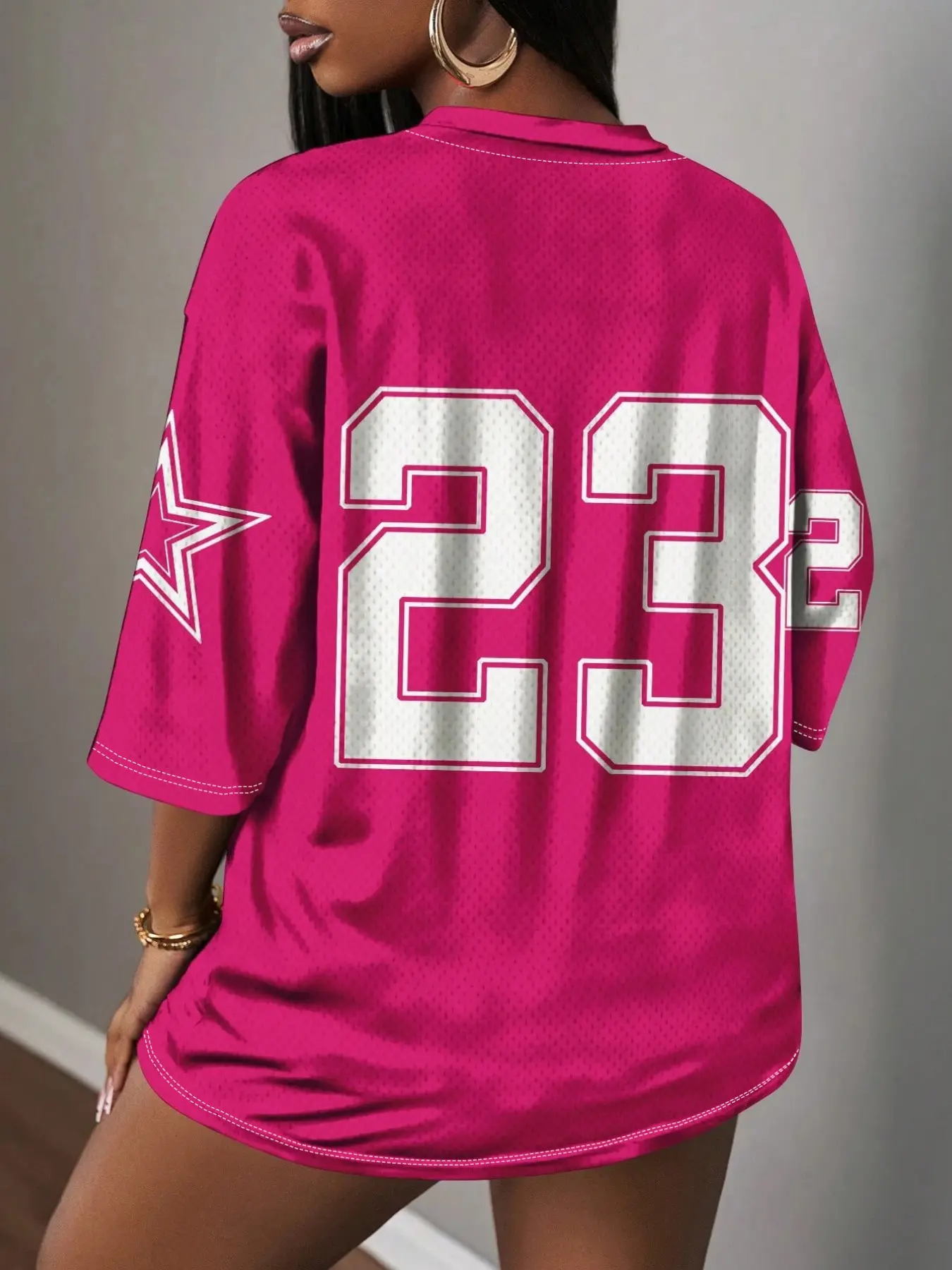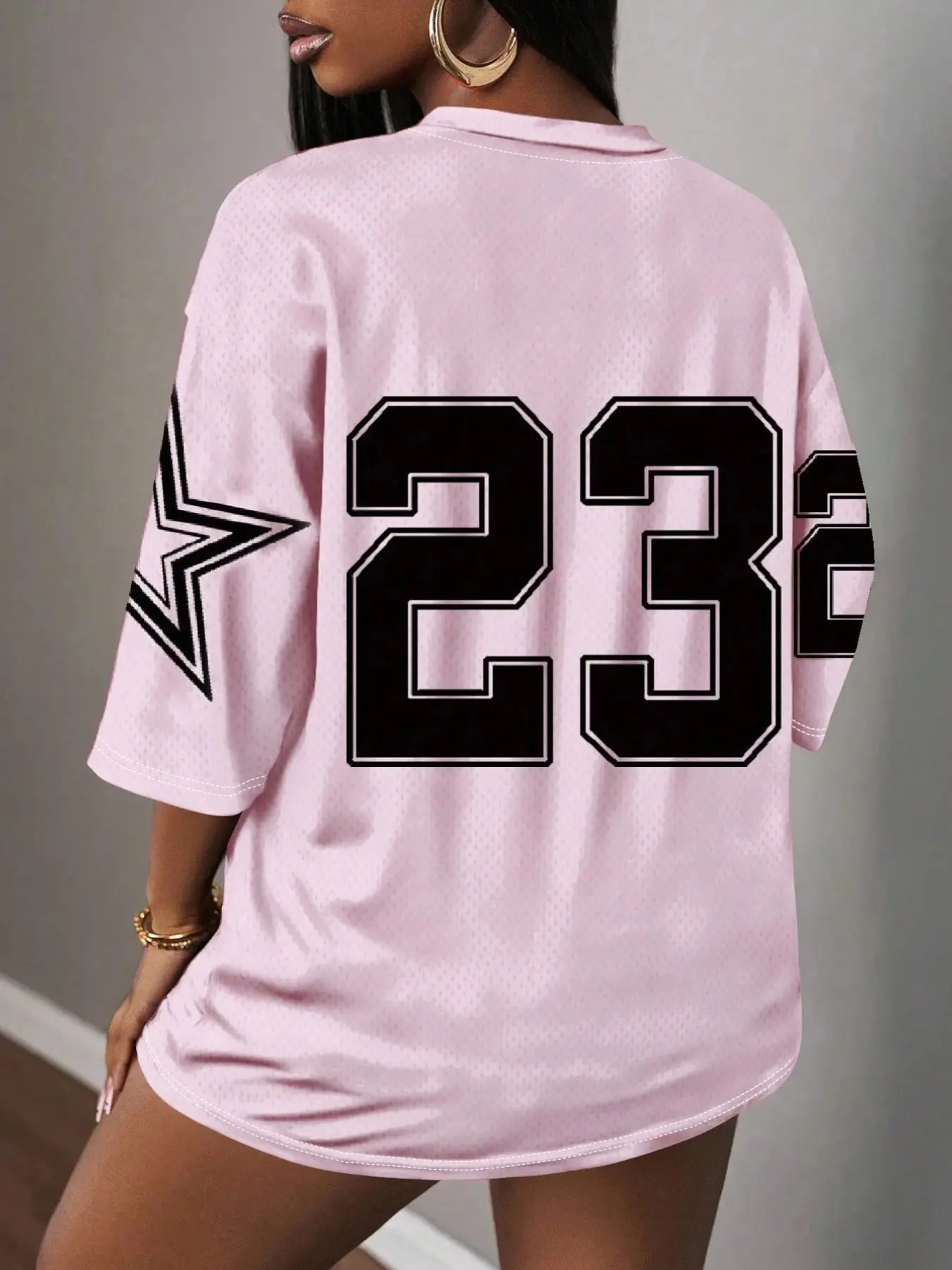 Y2K 23 Number Print Mesh V-Neck T-Shirt, American Retro Style, Breathable Sport Top, Multiple Colors Available, Loose-Fitting, All Seasons
