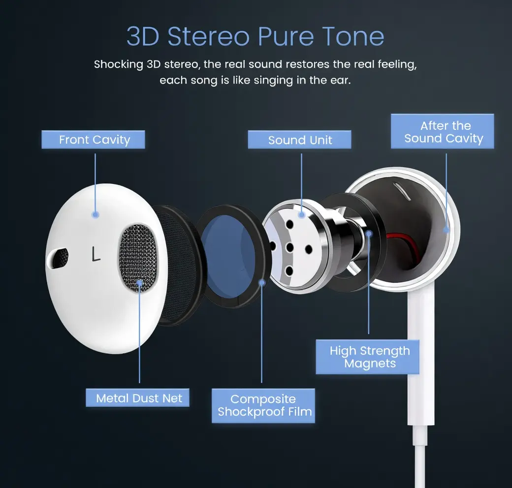 ·Built-in Microphone & Volume Control – Answer calls, pause/play music, skip tracks, and adjust volume directly from the inline remote
