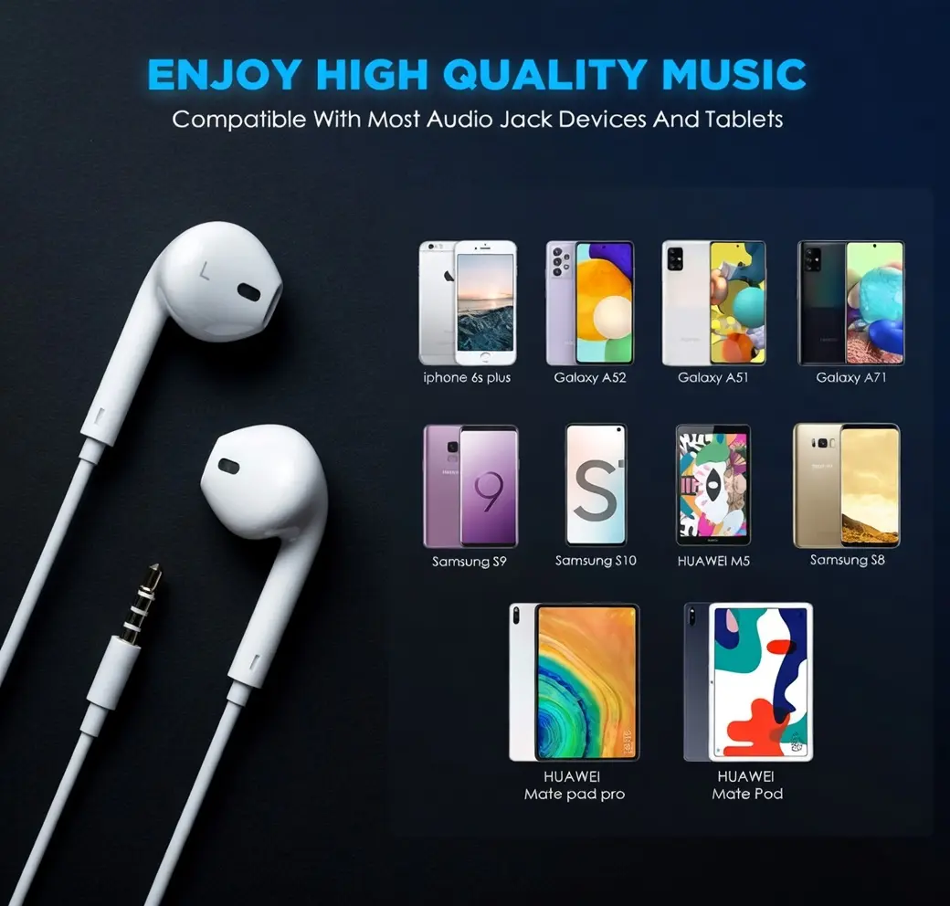 ·3.5mm Audio Jack – Universal compatibility with iPhone (with adapter), iPad, Samsung, Huawei, tablets, laptops, and most devices with a 3.5mm headphone jack