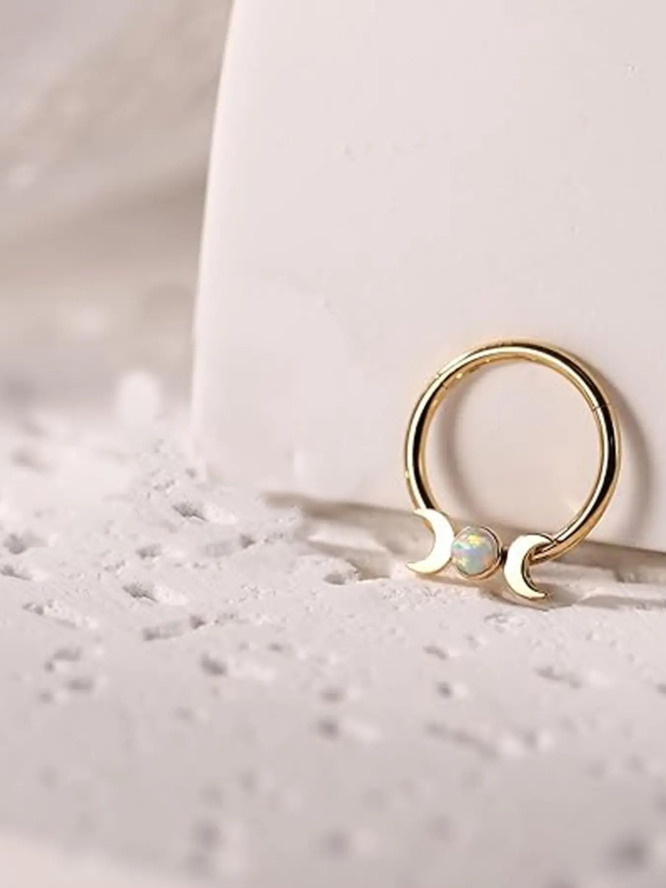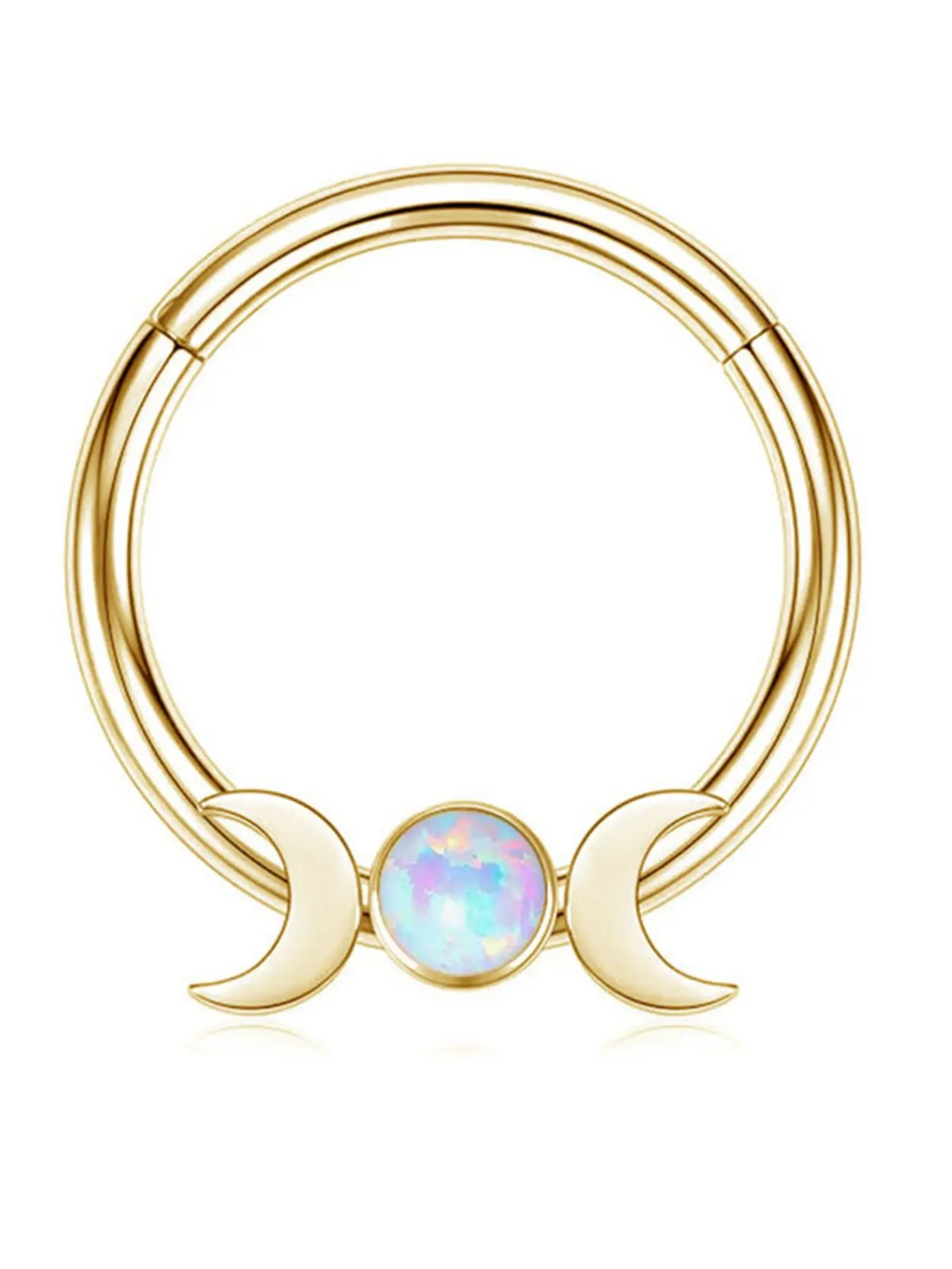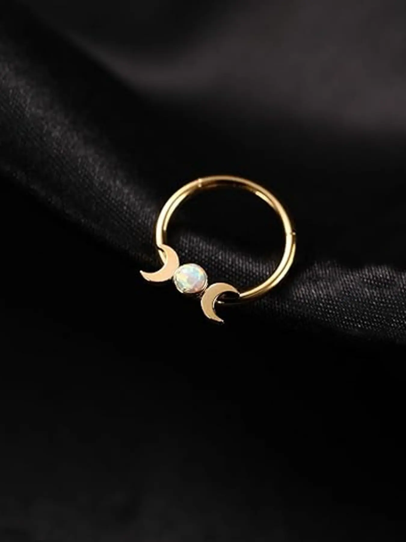 Moon Opal Septum Ring for Women, Stainless Steel Nose Ring Hoop, Double Crescent Cartilage Earring, Minimalist Piercing Jewelry, Aesthetic Gift