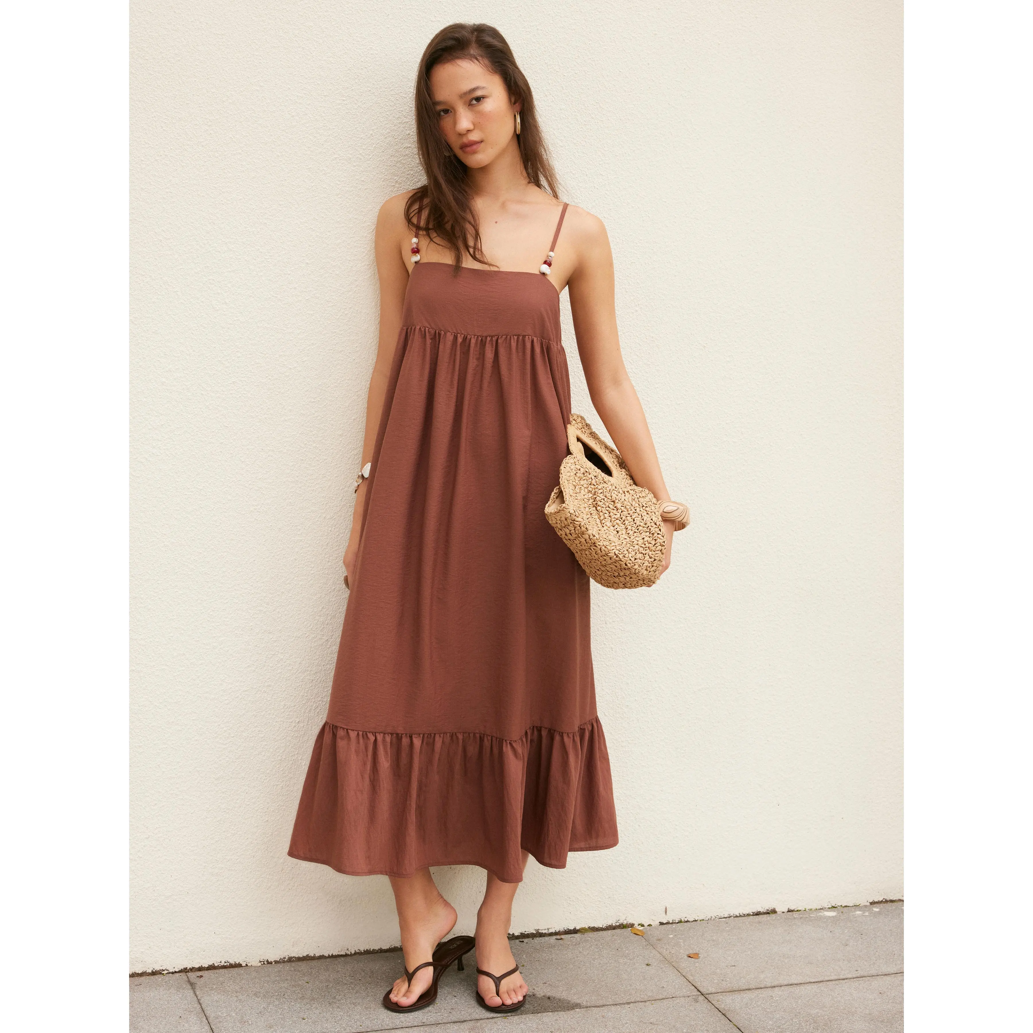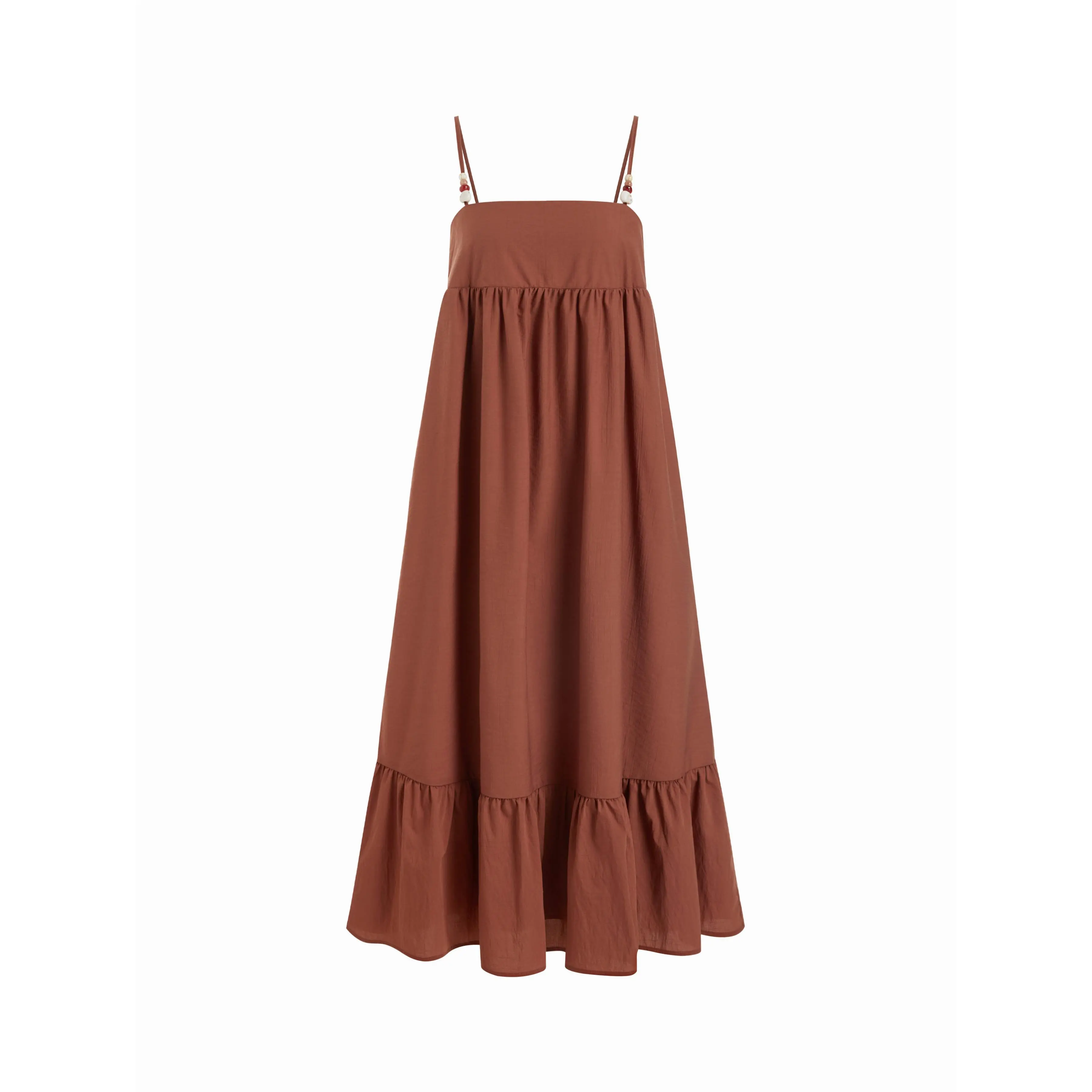 5. Cider Oversized Ruched Beaded Strap Detail Milkmaid Maxi Dress