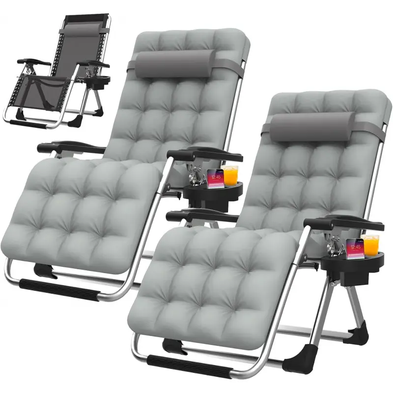 [4" Thicker Cushion, Cup Holder Pillow]The zero gravity lounge chair with a 4" cushion provides enhanced softness and comfort.The cushion is detachable, ensuring good ventilation even in the summer, making it suitable for use in both winter and summer.The multifunctional cup holder provides storage for items such as phones, water bottles, keys, and more.The upgraded padded pillow provides you with a comfortable experience