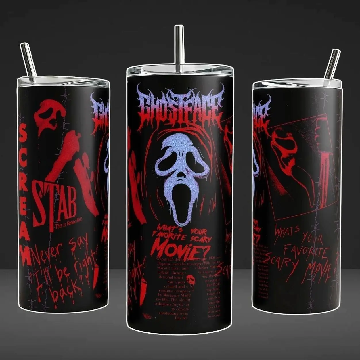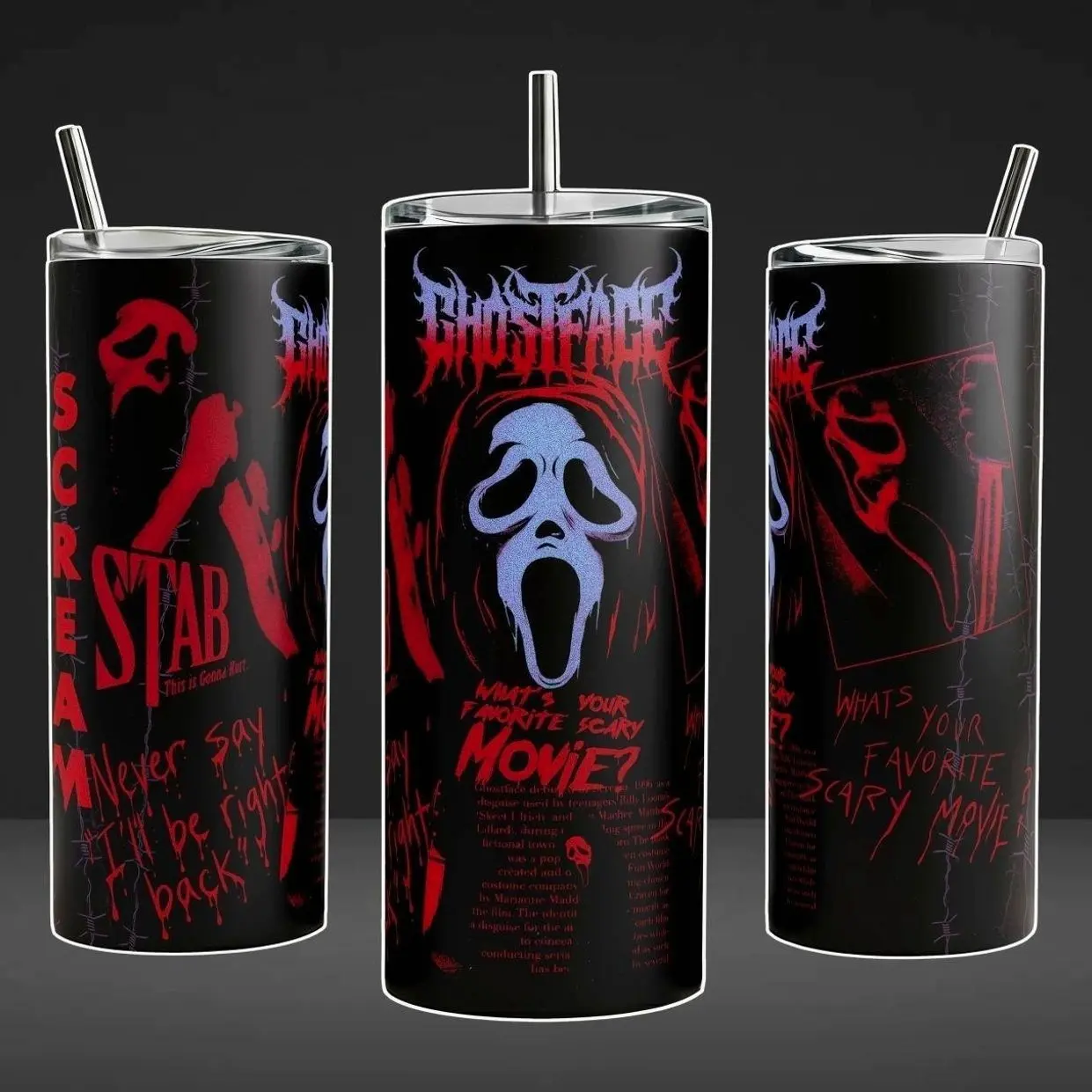 Scream 7 Ghostface Tumbler 40oz 20oz Movie Custom Cup 40 oz Tumbler With Handle, Tumbler 20oz No Handle, Gifts For Fans