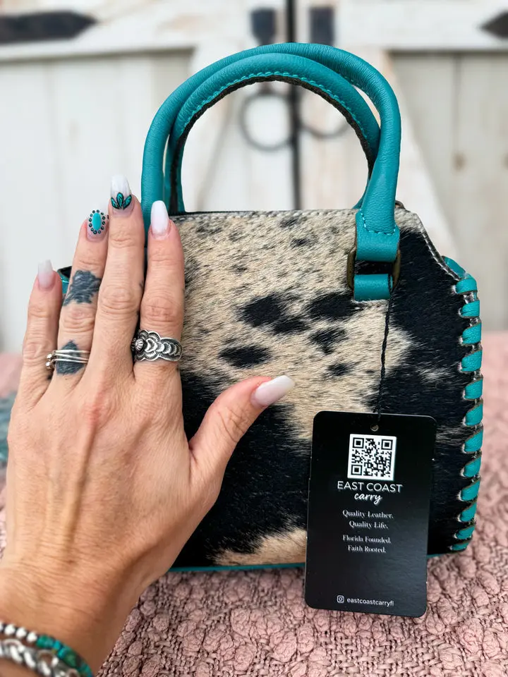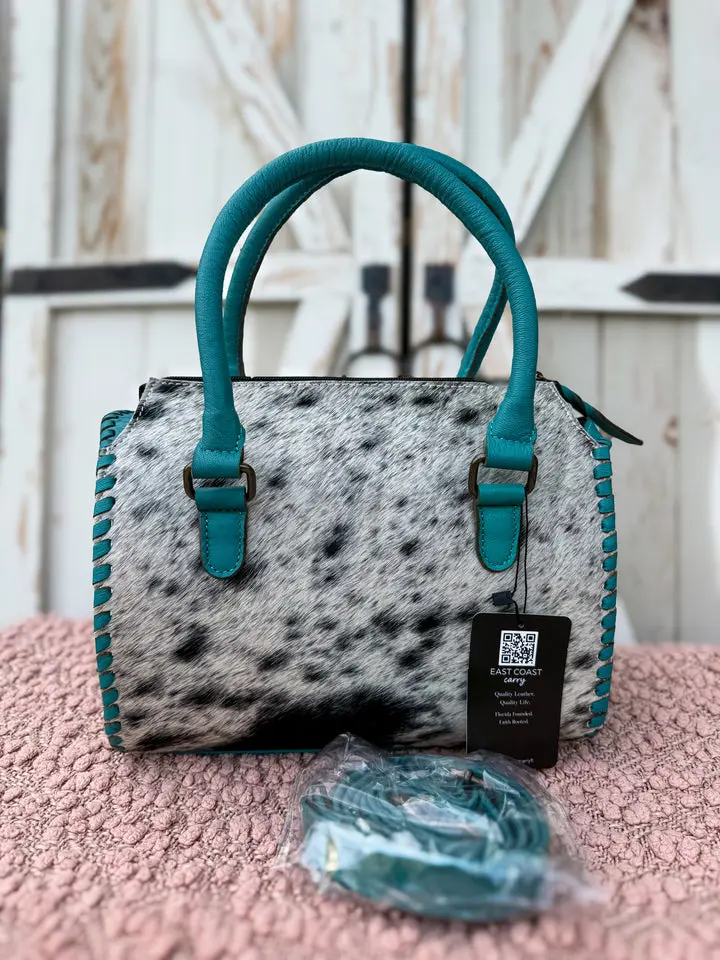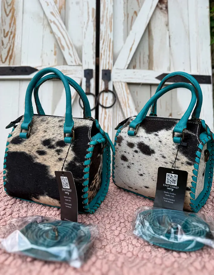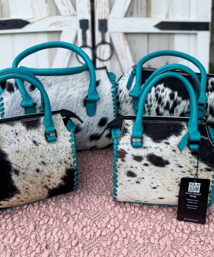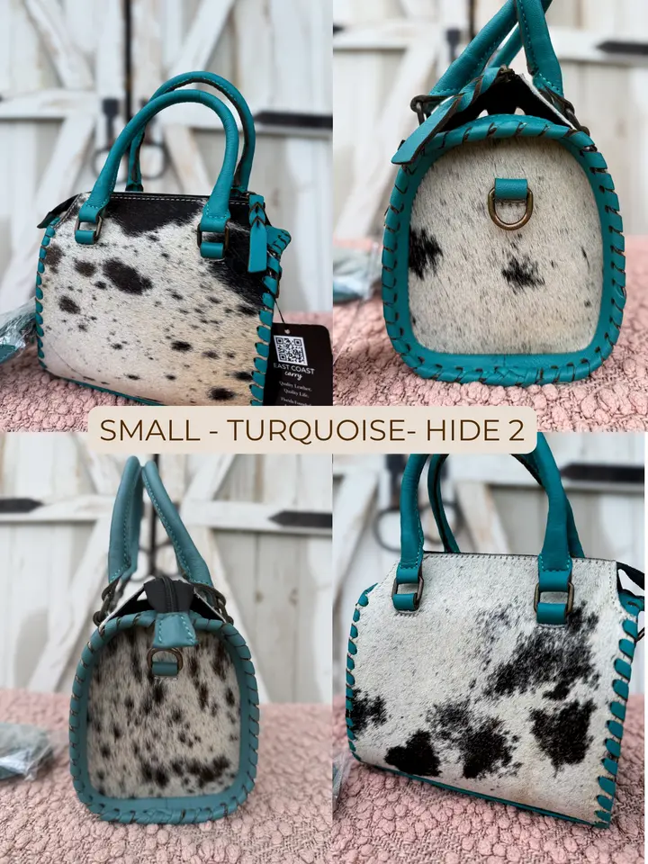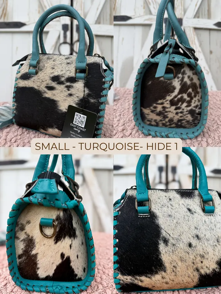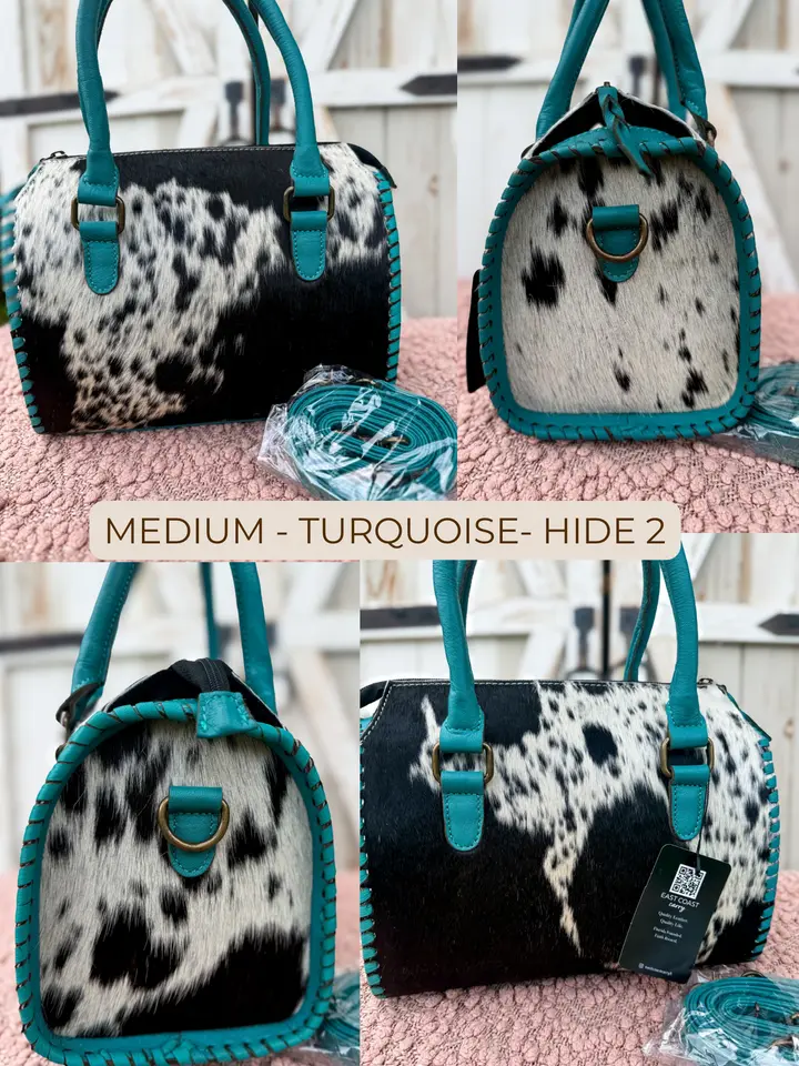 Each piece is handmade and one-of-a-kind. Natural variations in cowhide pattern, color, and texture are expected and make your bag uniquely yours.