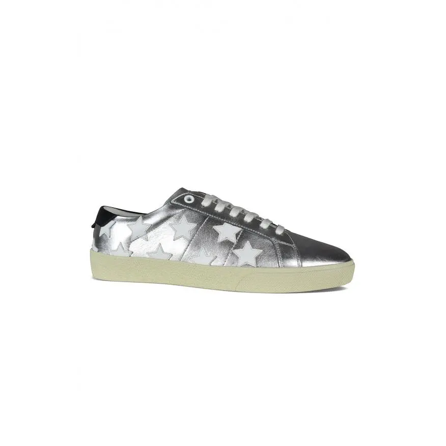Court Classic SL/06 Saint Laurent sneakers in silver leather with white leather stars.