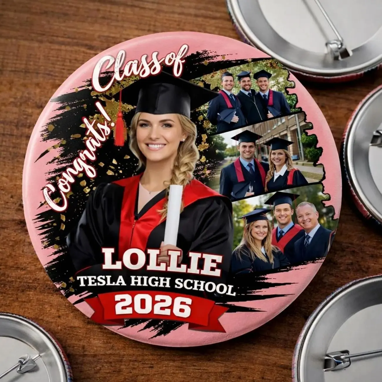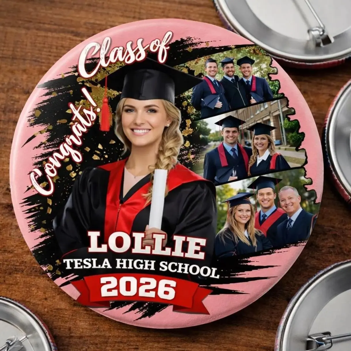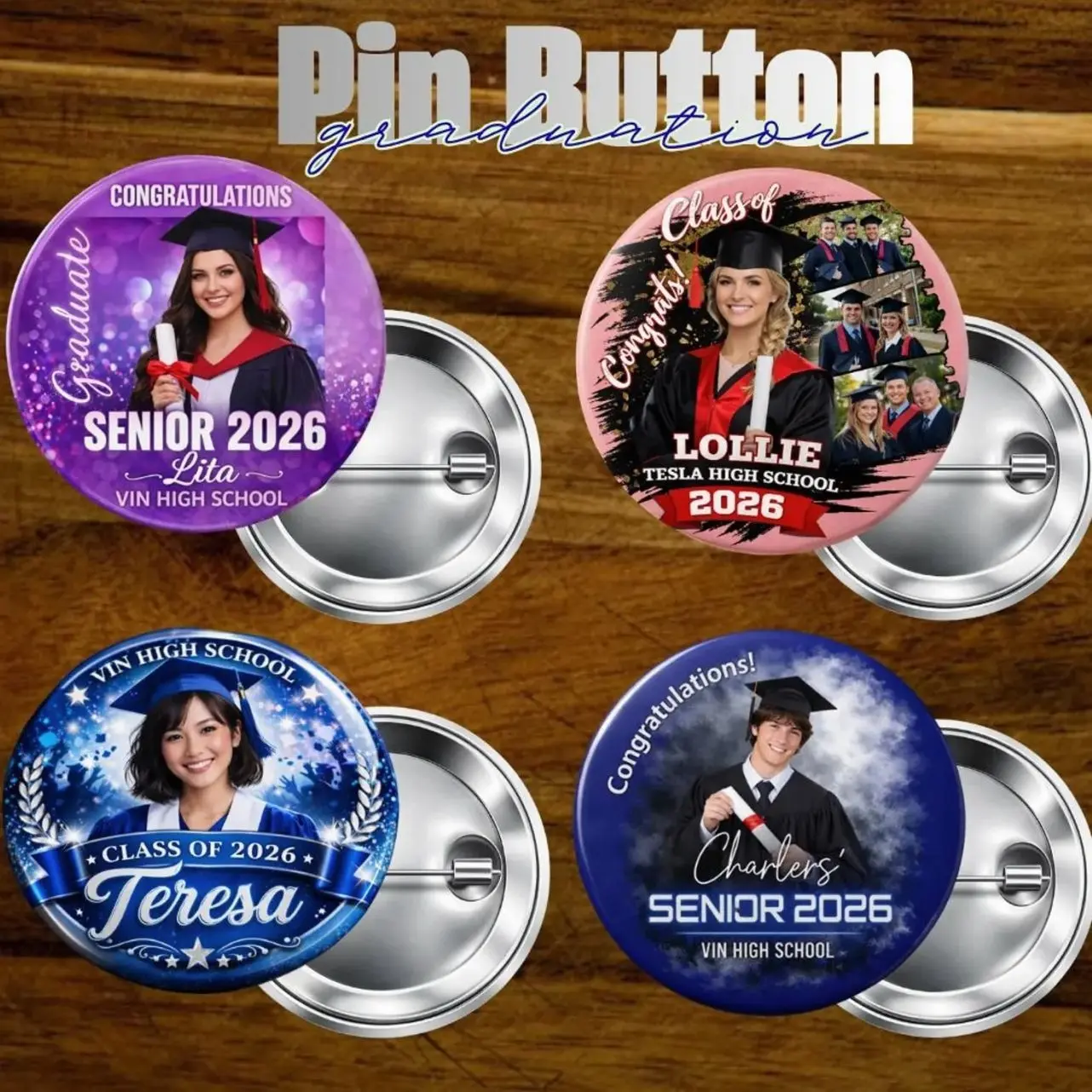 Custom Graduation Photo Pin Button 2026, Personalized Senior Button with Name School, Class of 2026 Grad Pin Gifts