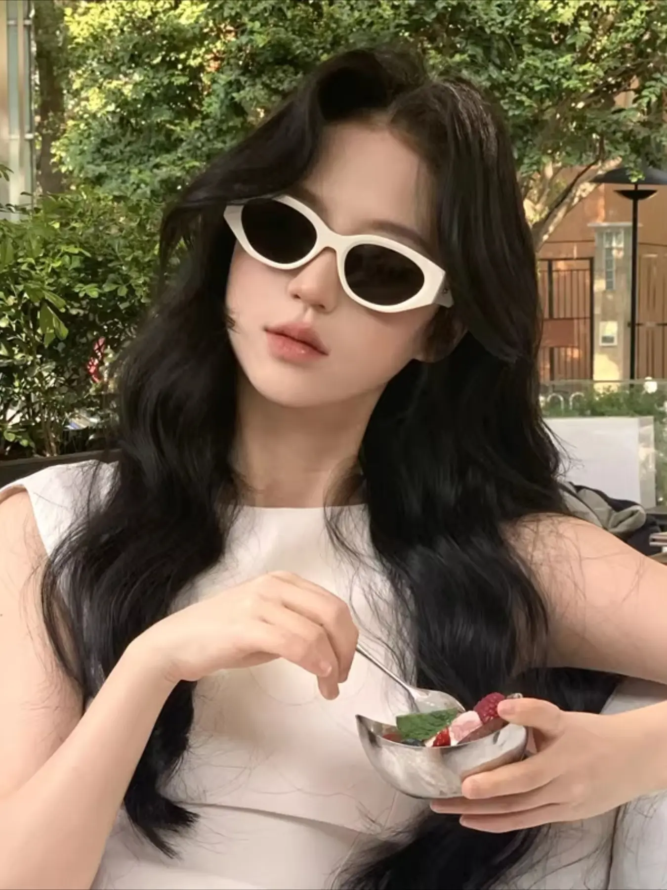 5. 2026 New Cat Eye White Sunglasses Women's Trendy Square Round Face Covering Cheekbones Showing Face Small Summer Sunglasses