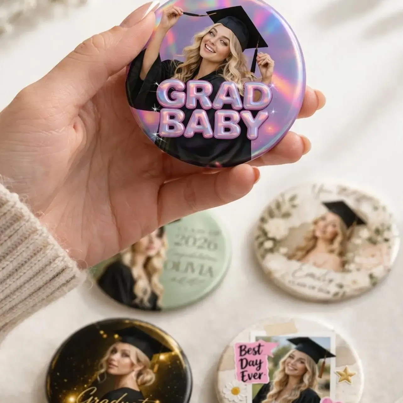 4 Styles Design Personalized Graduation Button Pins 2026, Custom Photo Grad Pin, Class of 2026 Pin Senior Gift
