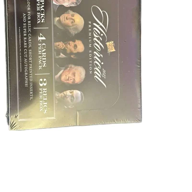 ·What makes the Historical Premium Edition different from other Historical Edition releases?ALL Pieces Relics feature the document relic embedded/trapped into the card!ALL Base, Inserts and Relicsare printed on reflective mirror technology card stock.In My Hand Inscription Relic Cards show an image of the entire document, with description, from which the relic portion was taken on the reverse of the card.Cut Signatures fall 1:10 Cases, on average! and features a stellar subject listincluding:Abraham LincolnFranklin D. RooseveltDonald TrumpBarack ObamaThomas EdisonCornelius VanderbiltWilliam FargoKing George IVAND MORE!