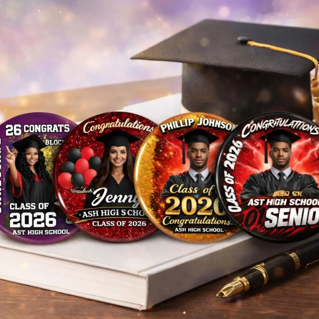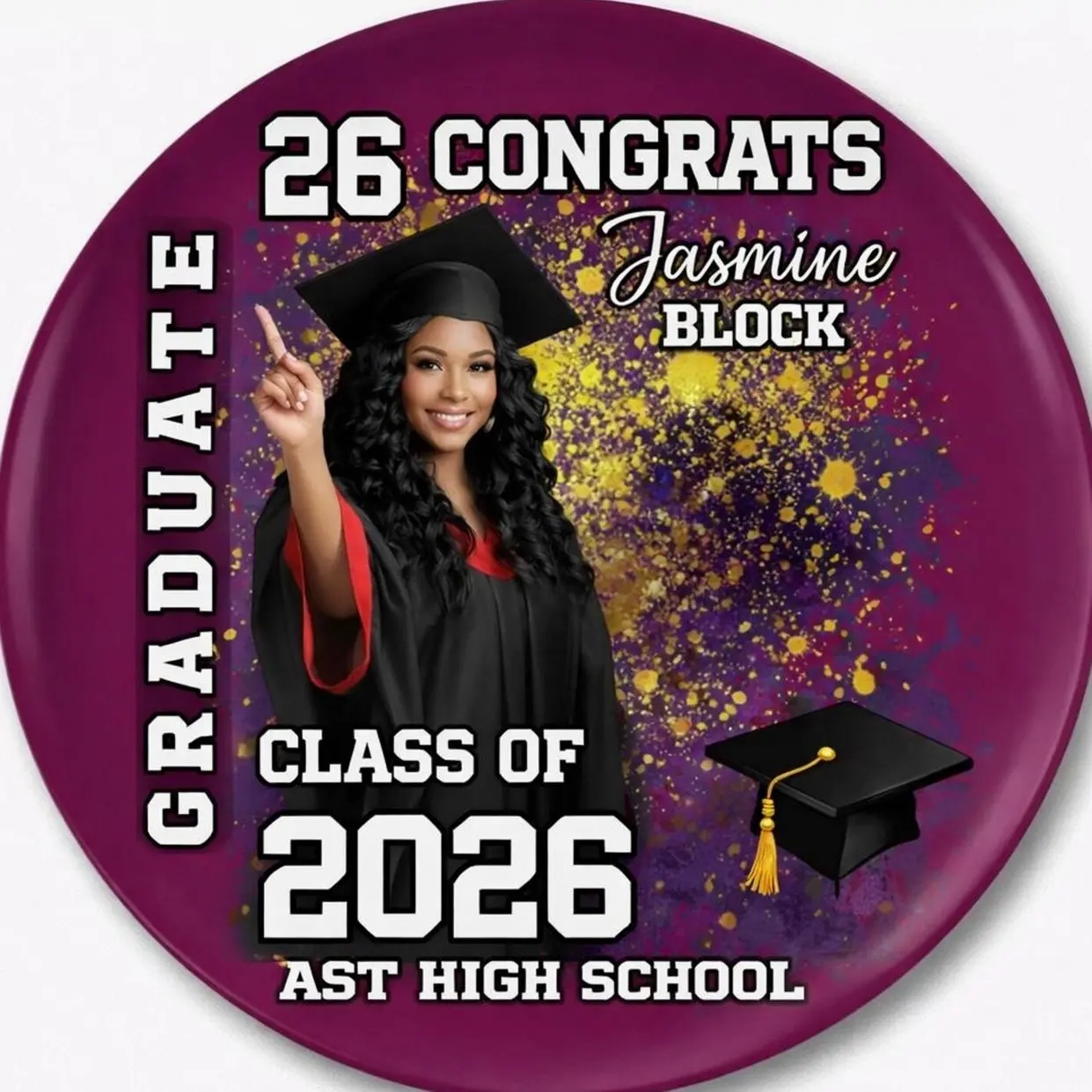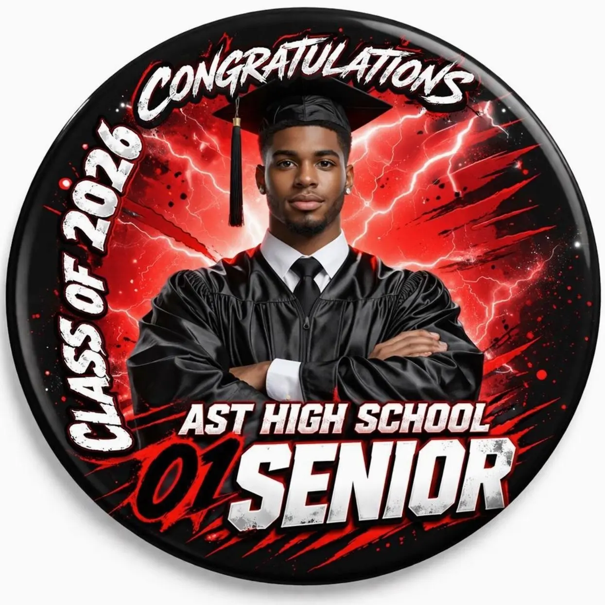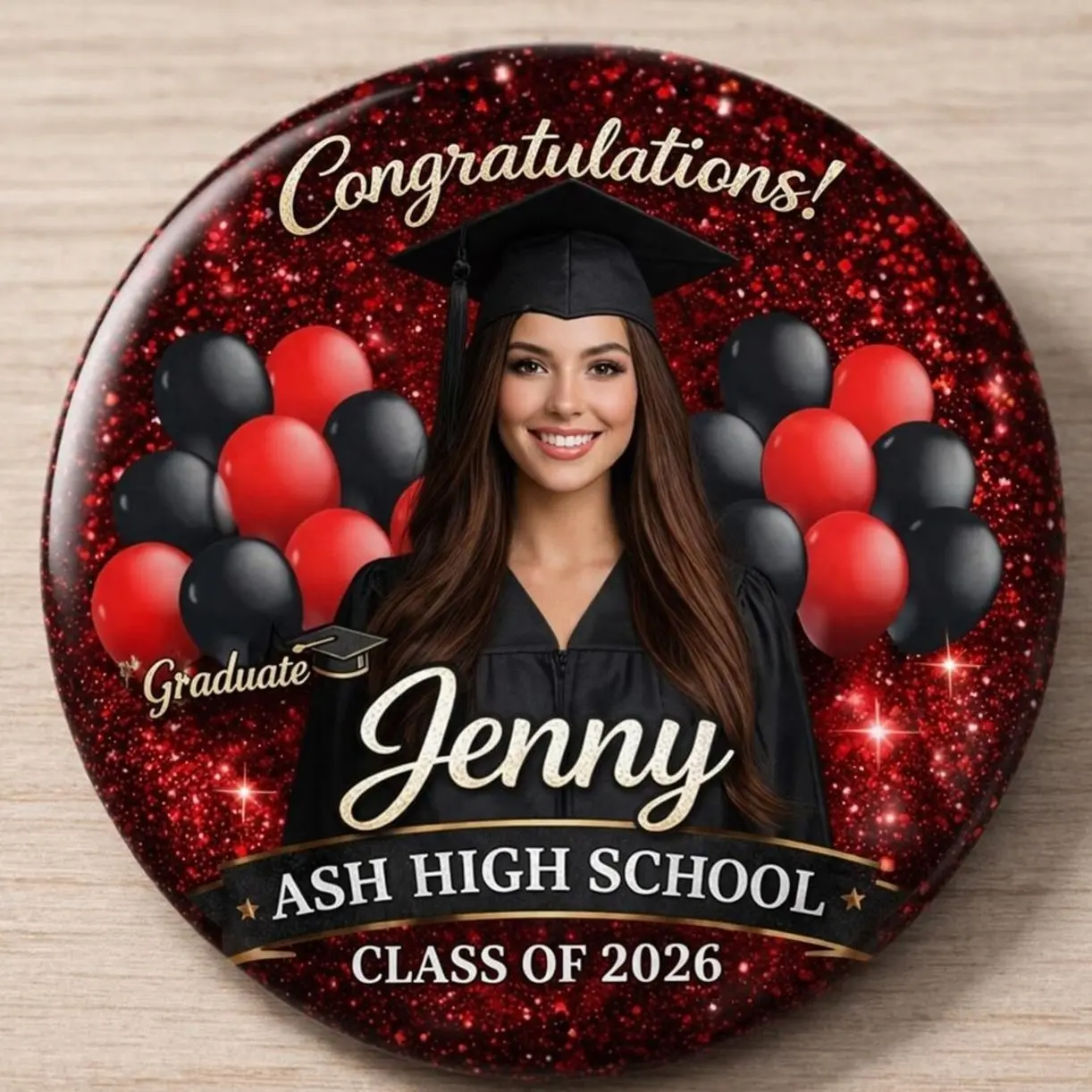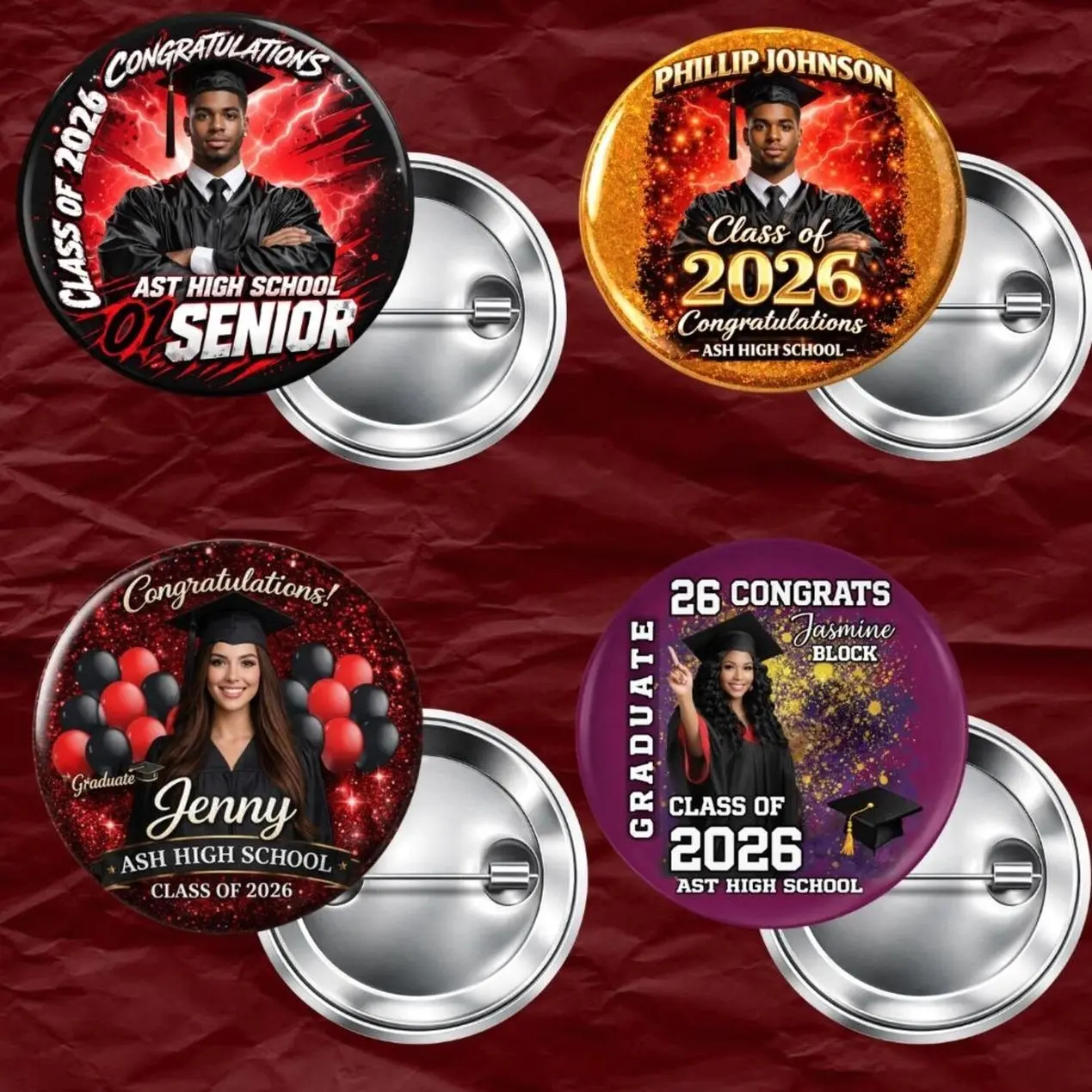 4 Styles Design Custom Graduation Photo Pin Button, Class of 2026 Senior Pin, Bold Congrats Grad Pin
