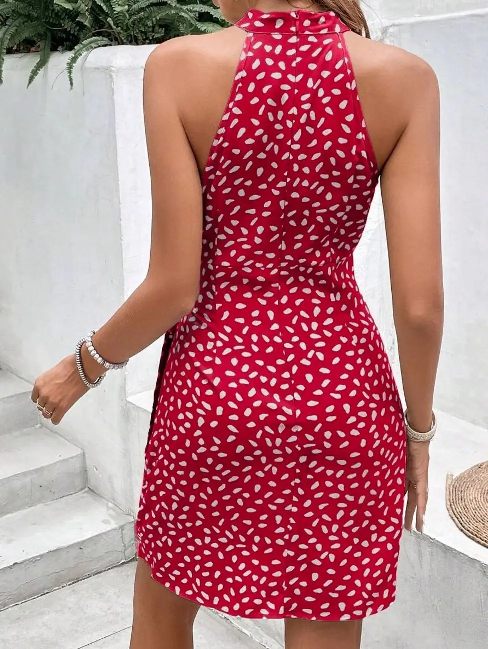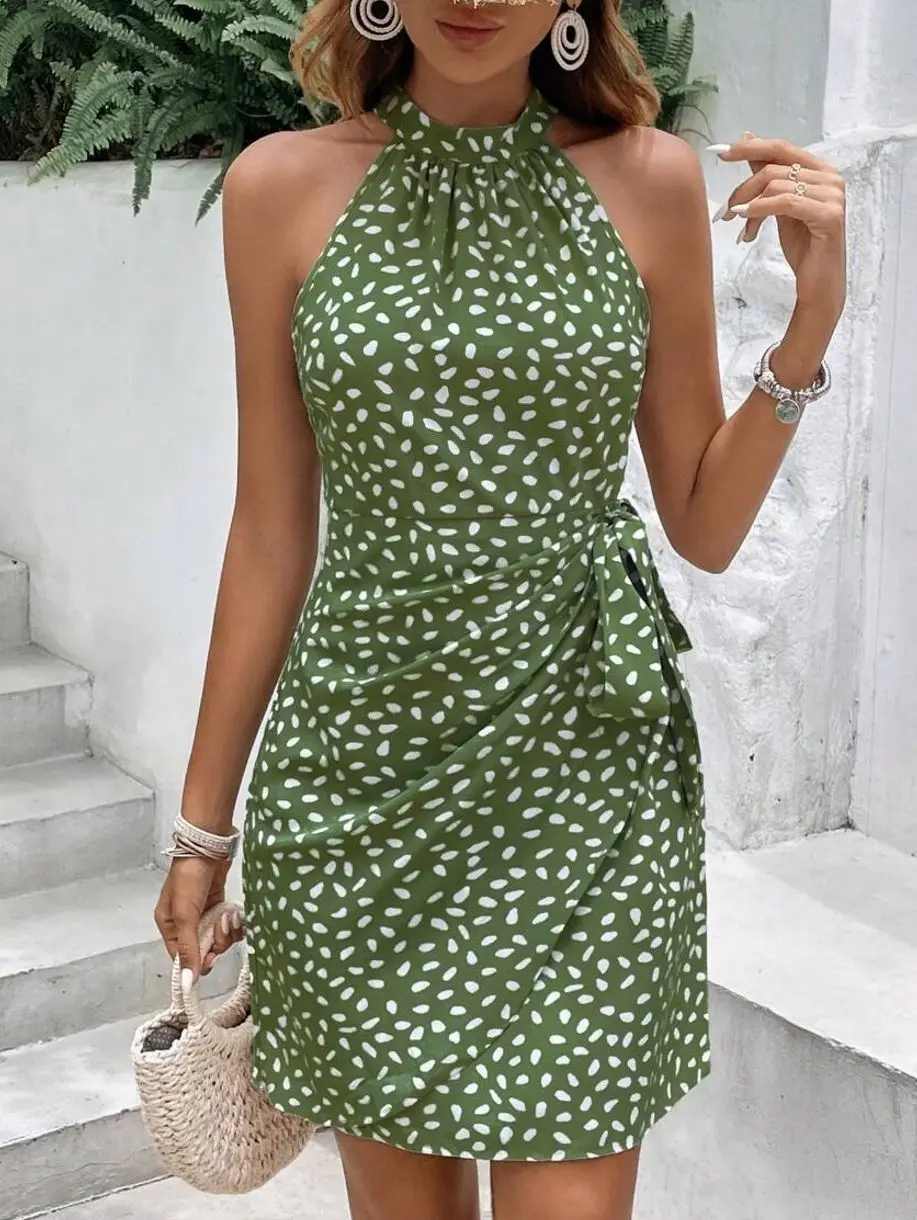 SHEIN Frenchy Women's Summer Allover Print Sleeveless Halter Dress Teacher Clothes Old Money Style Elegant Dress Chic Green Casual Christmas Beach