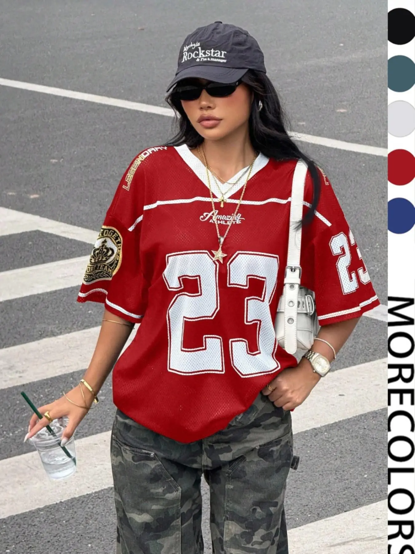 Women's Y2k23 Retro Mesh Breathable Sports Jersey, Streetwear Daily Wear Top, Loose-Fit Short Sleeve, All Seasons Fashion