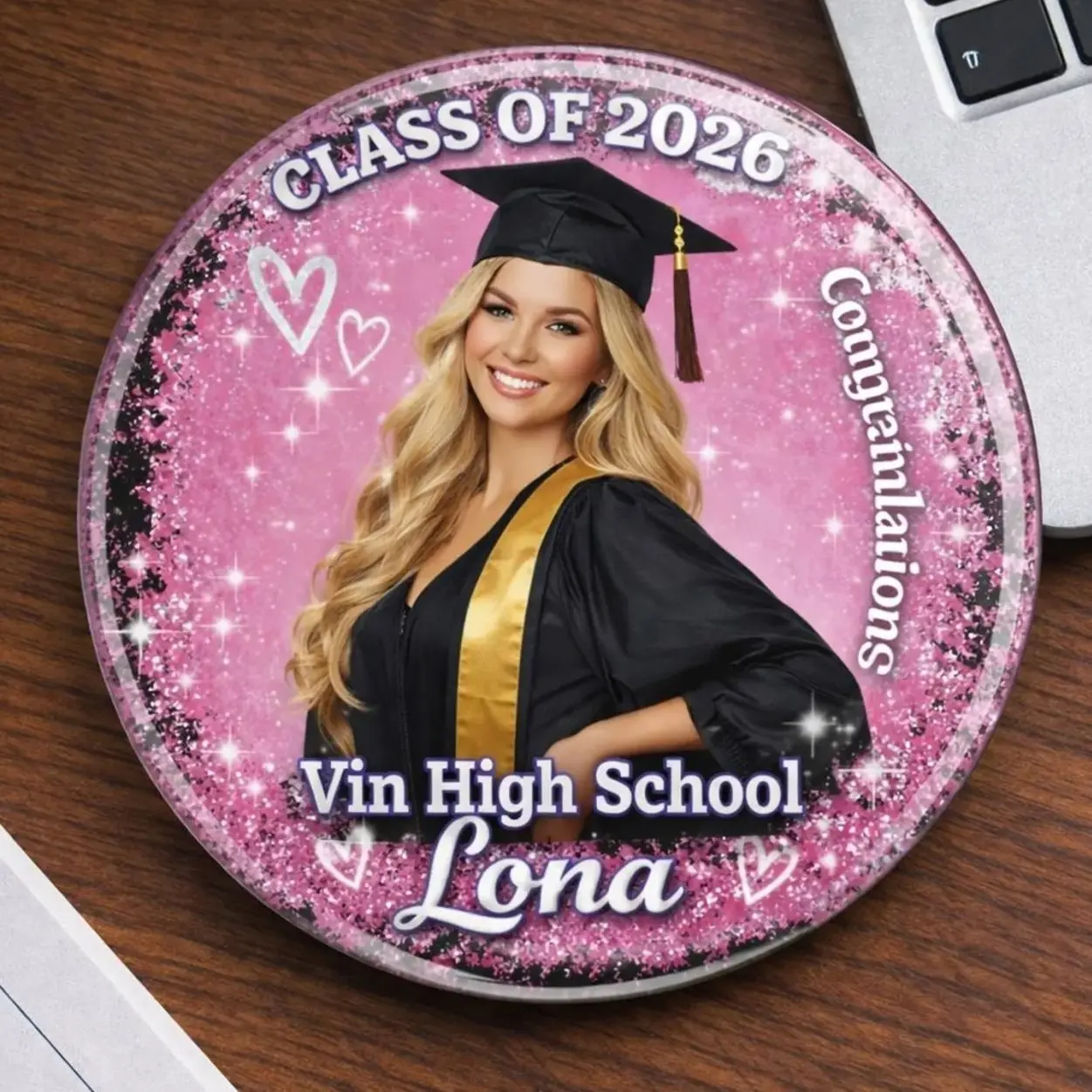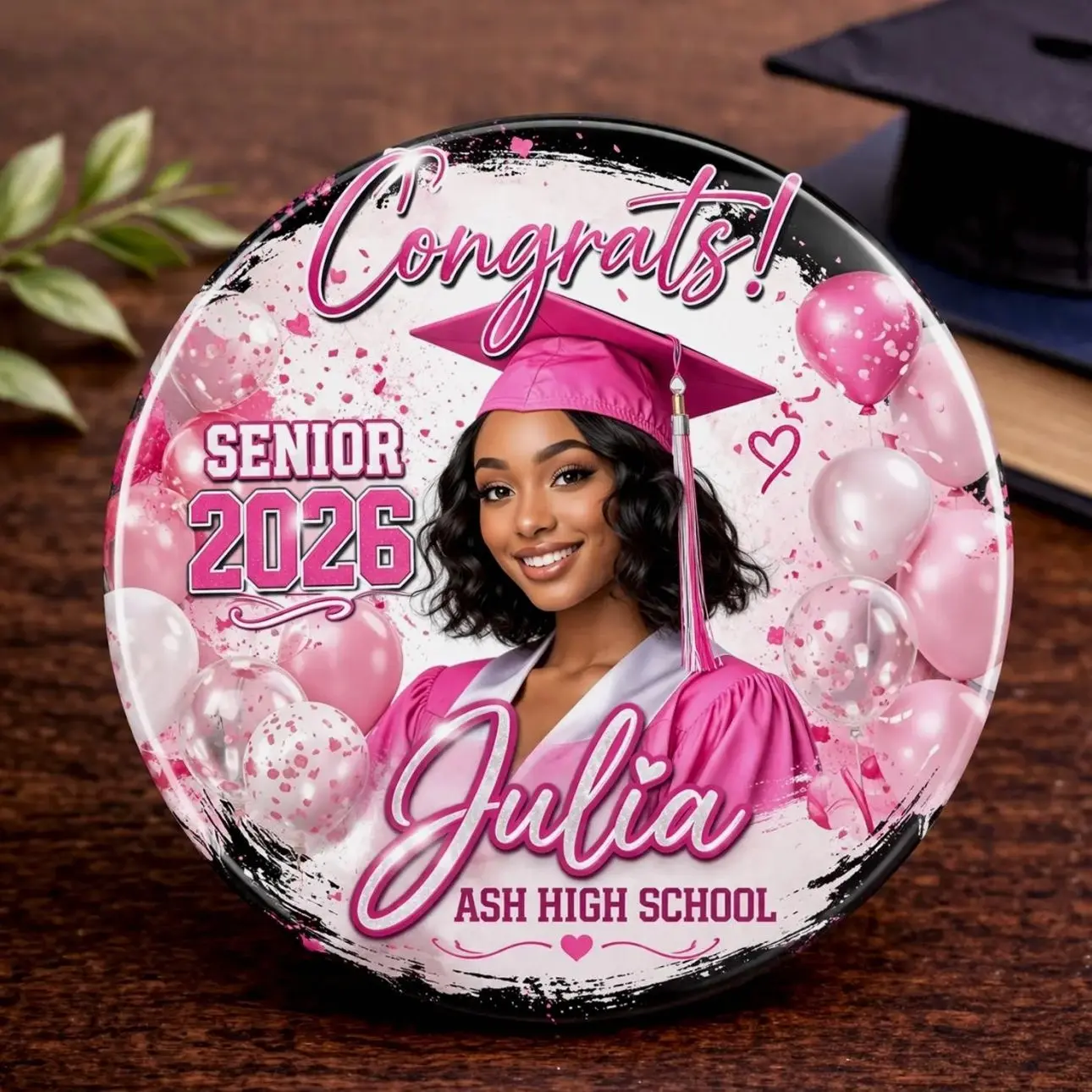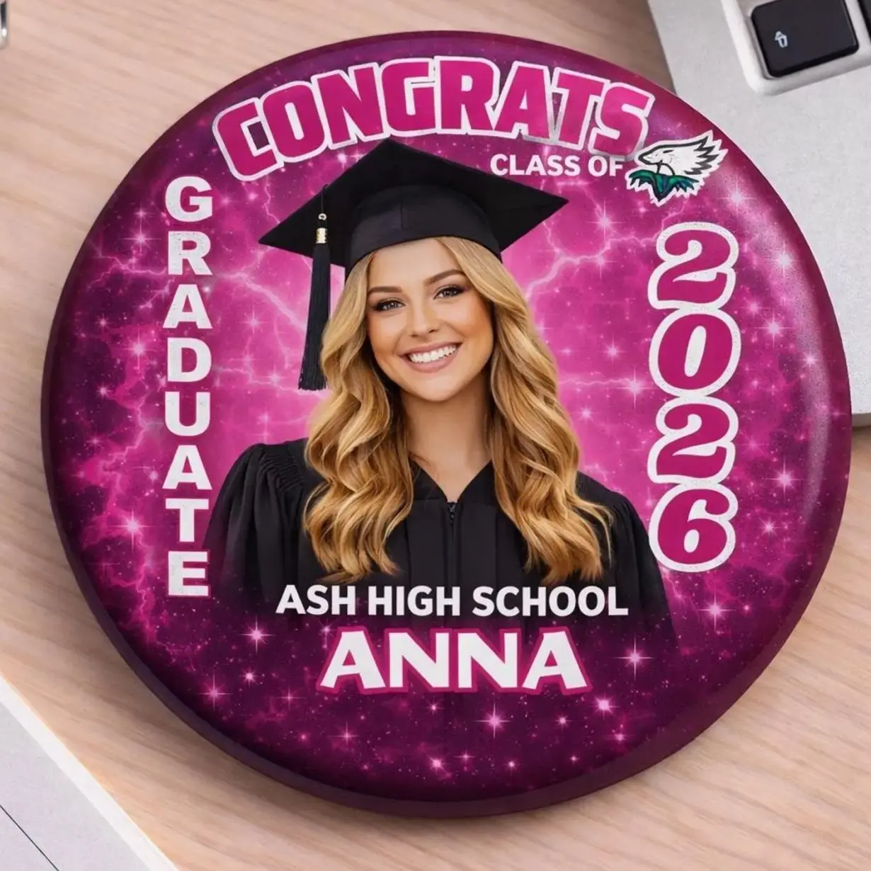 4 Ops Design Personalized Graduation Photo Pin Button, Custom Grad Badge Class of 2026, Senior Portrait Pin, Congrats Graduate Gift