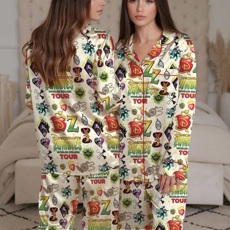 Descendants Zombies 4 Tour Satin Pajamas, Fun Descendants Cartoon Silk Sleepwear for Birthday Gift