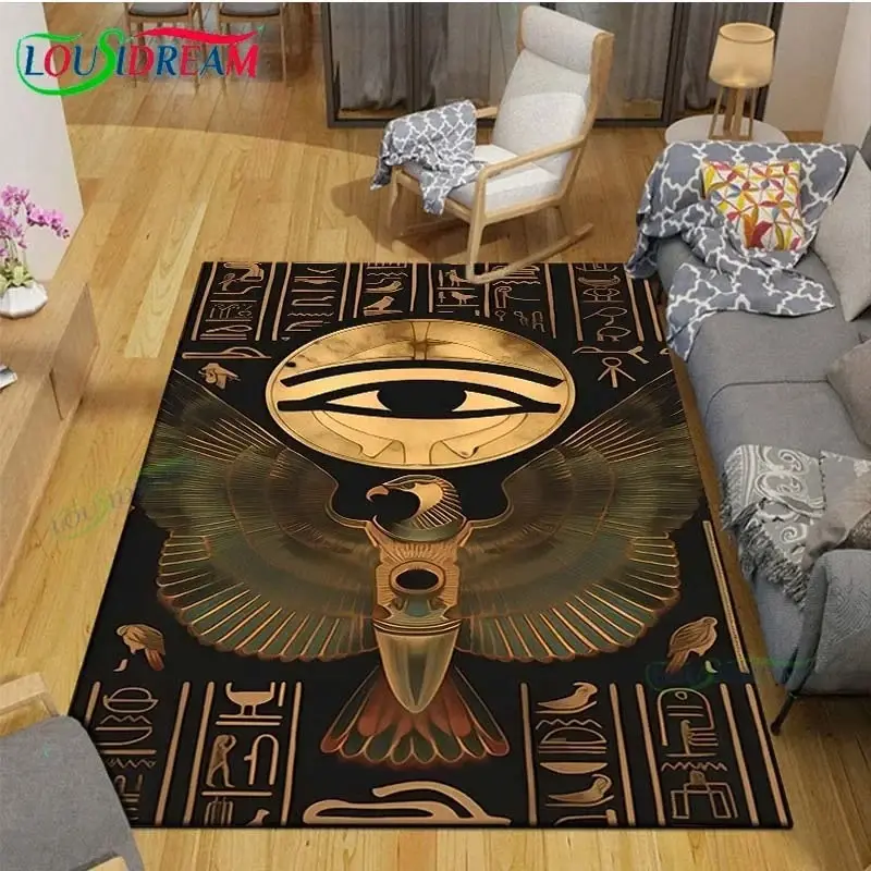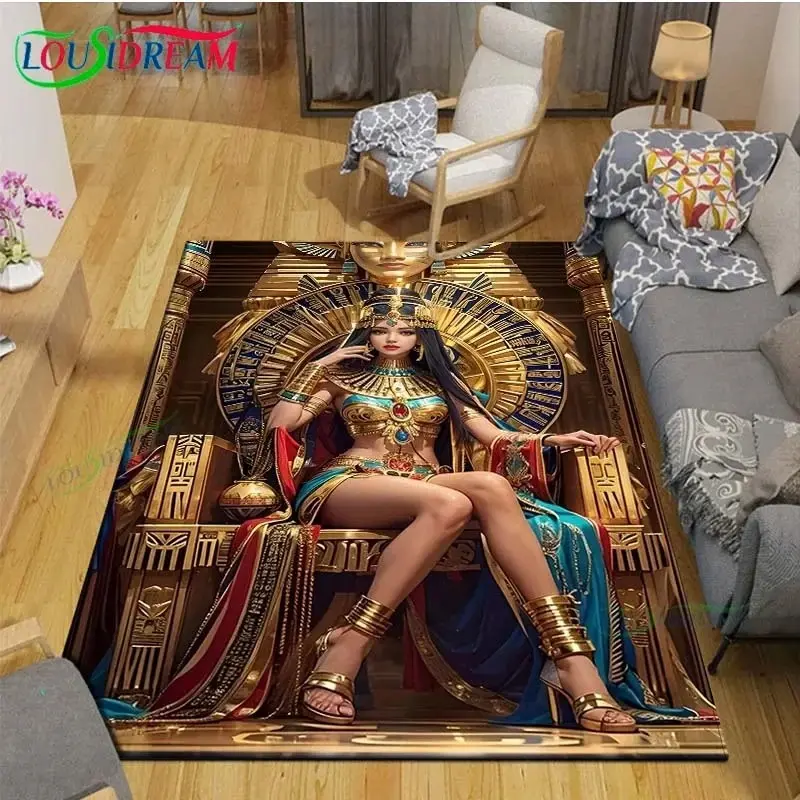 Luxury Ancient Egyptian Queen Flannel Area Rug - Golden Pharaoh Throne Print Soft Mat for Living Room, Non-Slip Historical Home Decor#EgyptianQueenRug #PharaohThroneMat #AncientEgyptianDecor #GoldenMythologyCarpet #NonSlipFlannelRug