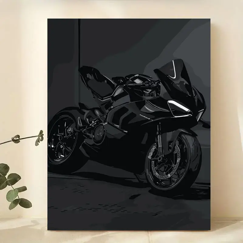 Sleek Black Superbike Sportbike Motorcycle Art Canvas Print, Modern Minimalist Unframed Wall Art Poster for Garage, Man Cave & Bedroom, Premium Waterproof Ink Decor Gift for Biker Racing Fans