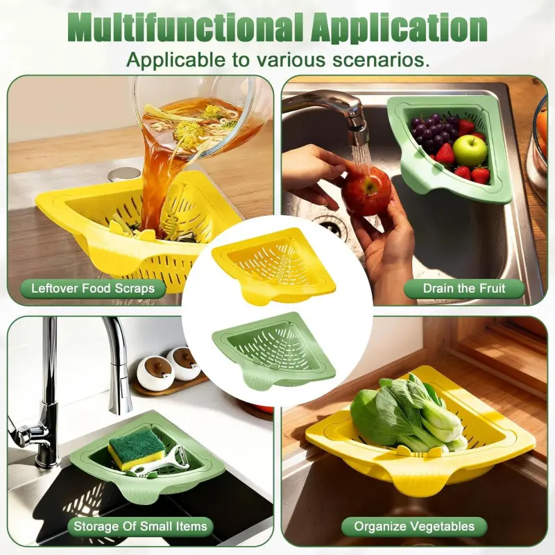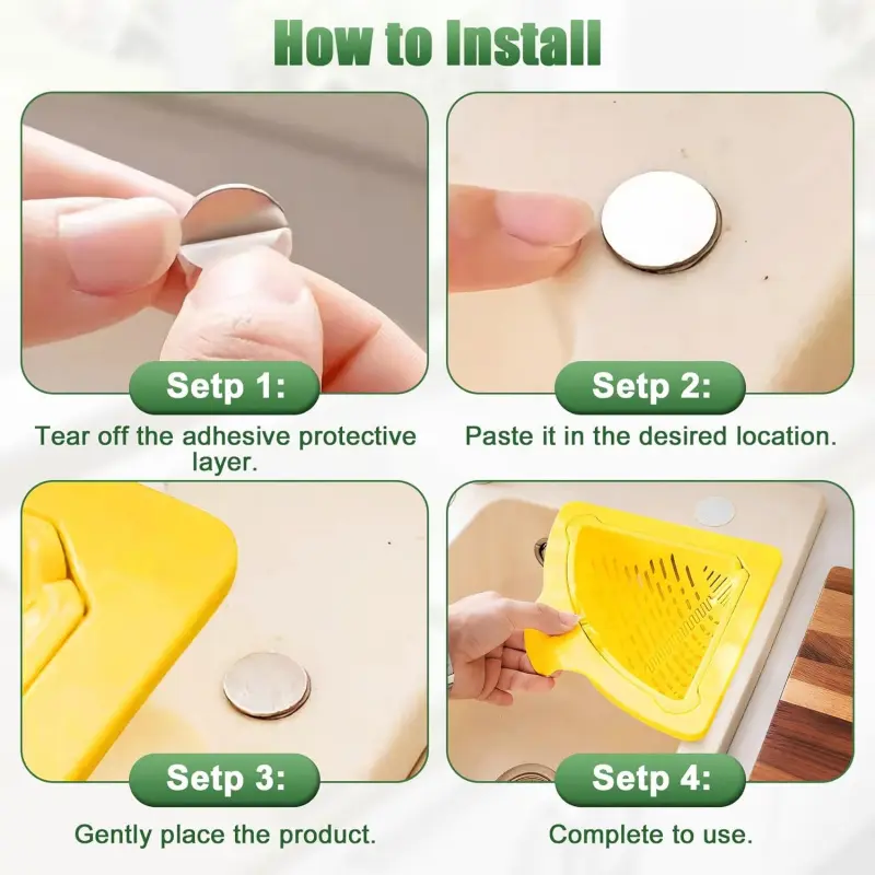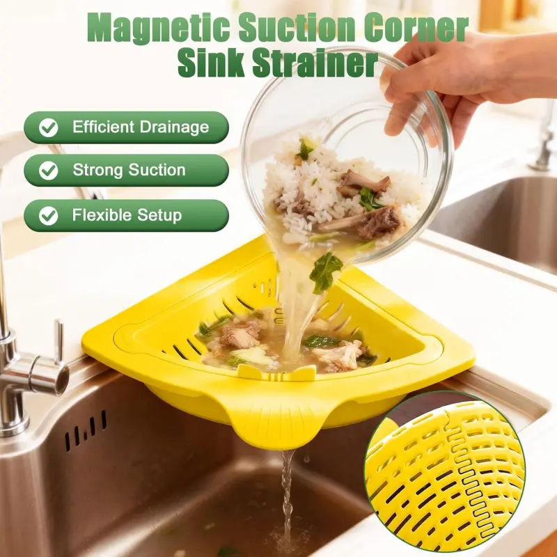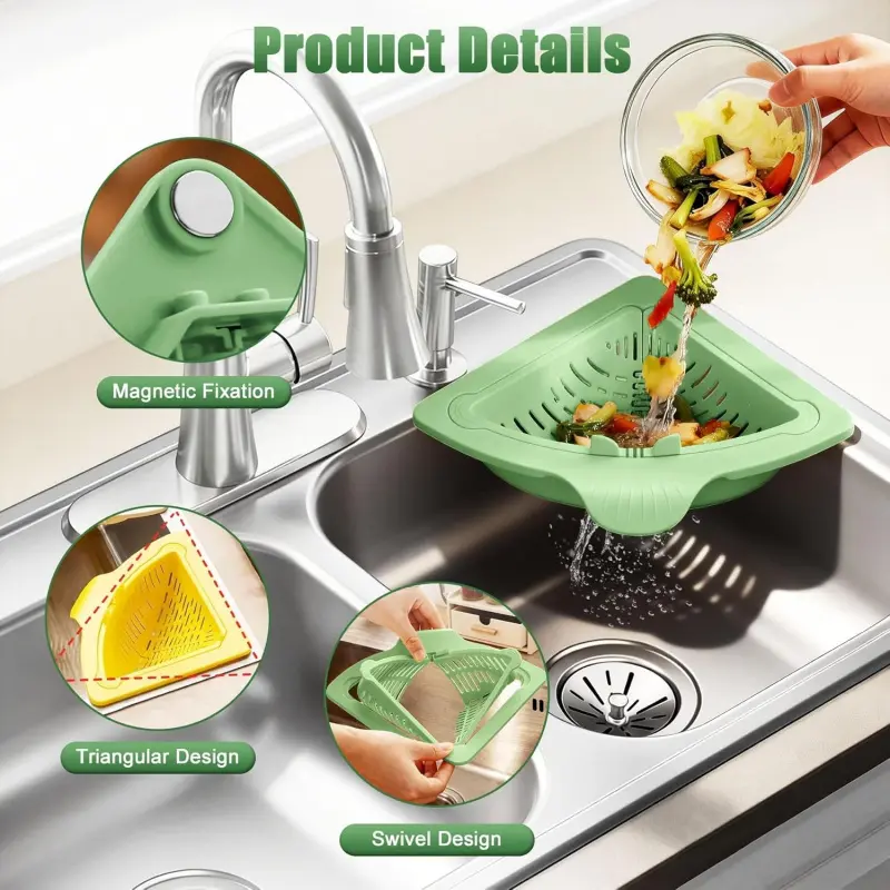 5. 2Pcs Magnetic Triangular Sink Drain Basket, Punch-Free Corner Drain Strainer with Twist-Open Bottom, Space-Saving Kitchen Sink Organizer