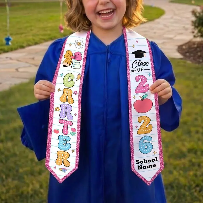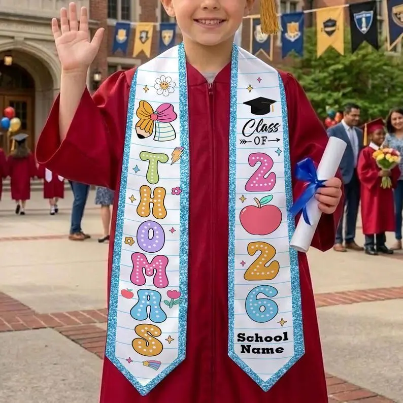 Custom Name Kid Graduation Stole, Grad Gift for Kids, Class of 2026 Kindergarten Stole, Kids Graduation Sash, Preschool Graduation Stole Graduation Stole