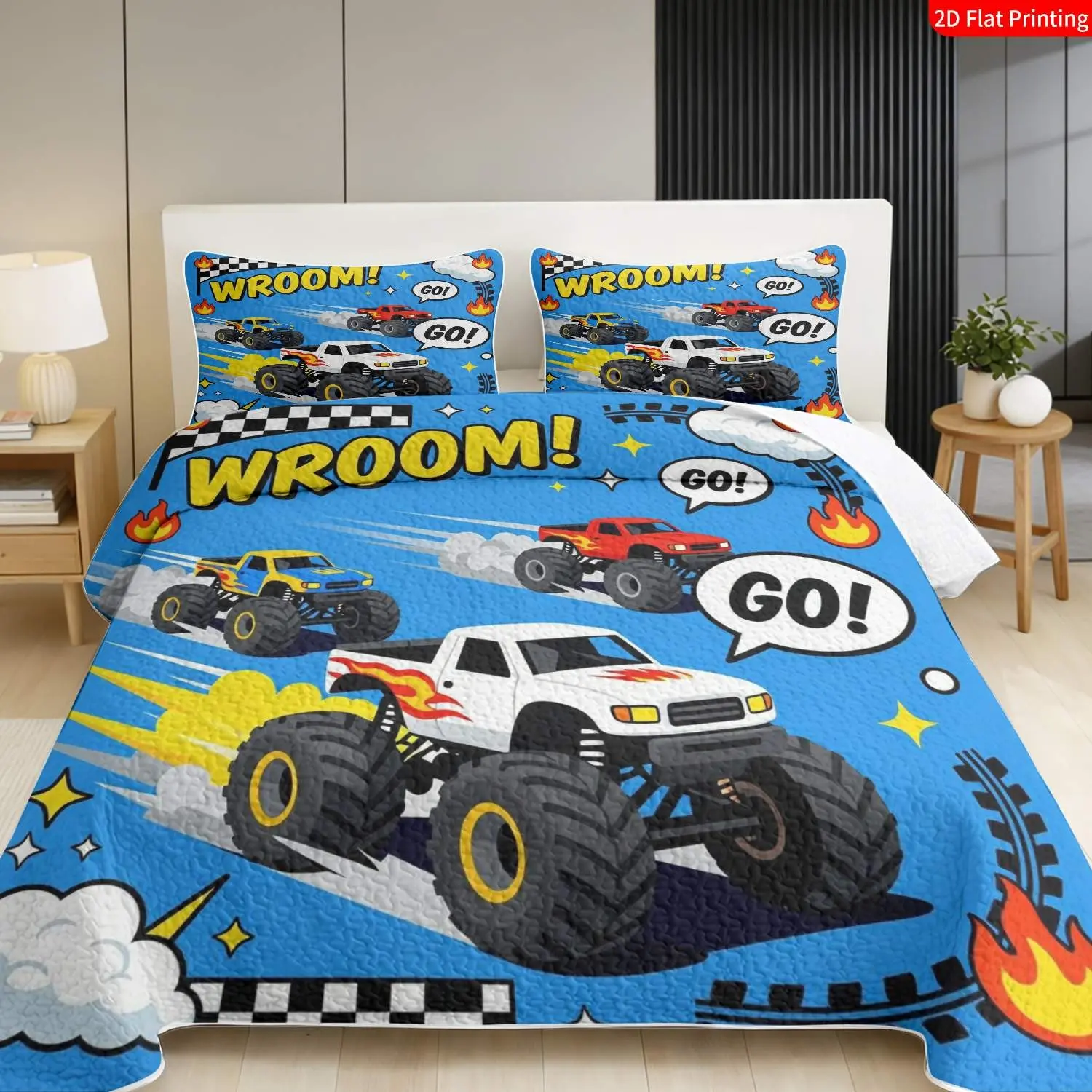 TikTok Made Me Buy It! Boys' Favorite Monster Truck Bedding 3Pcs Set | 1 Bedspread & 2Pillowcases, Racing Car Theme, Perfect Gift for Kids