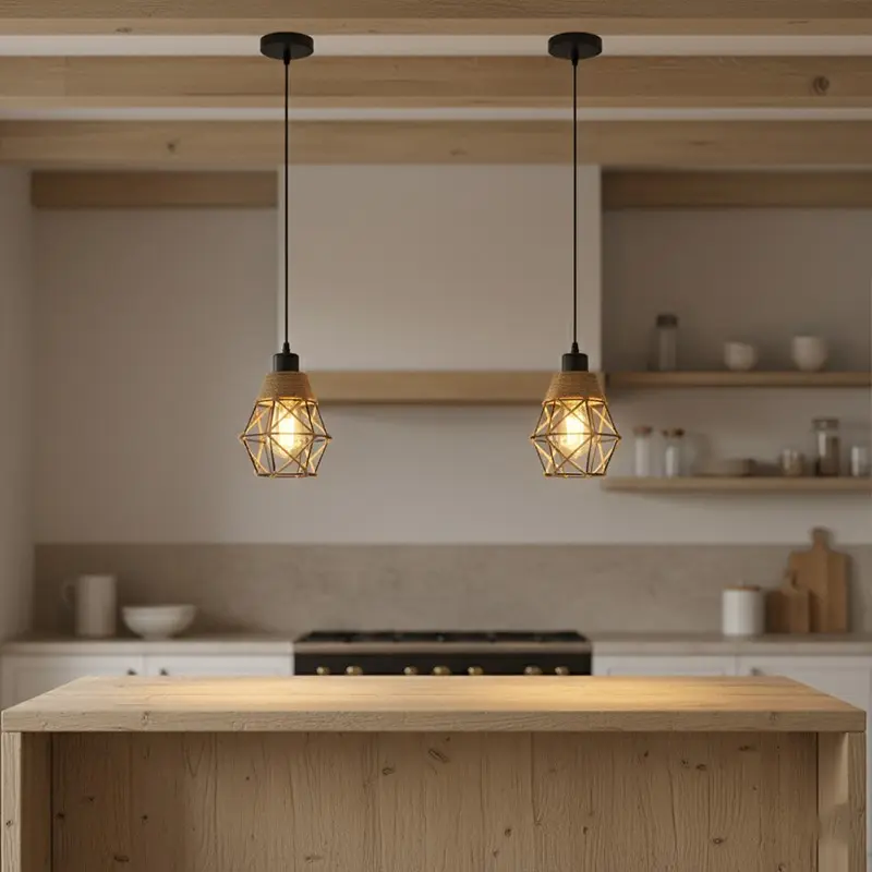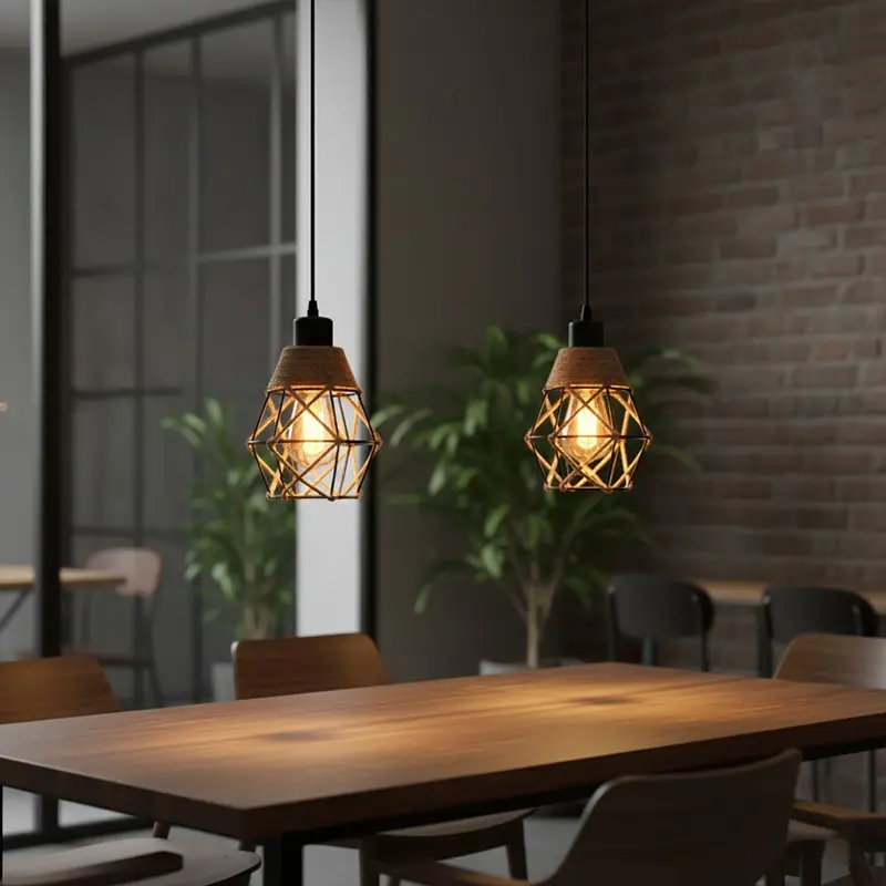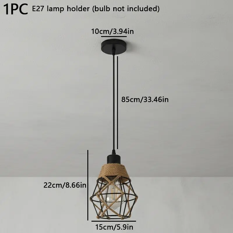 Creative Hemp Rope Single Head Iron Island Pendant Light, Adjustable Height, E27 Socket, Ideal for Dining Room, Coffee Shop, Bedroom, Study