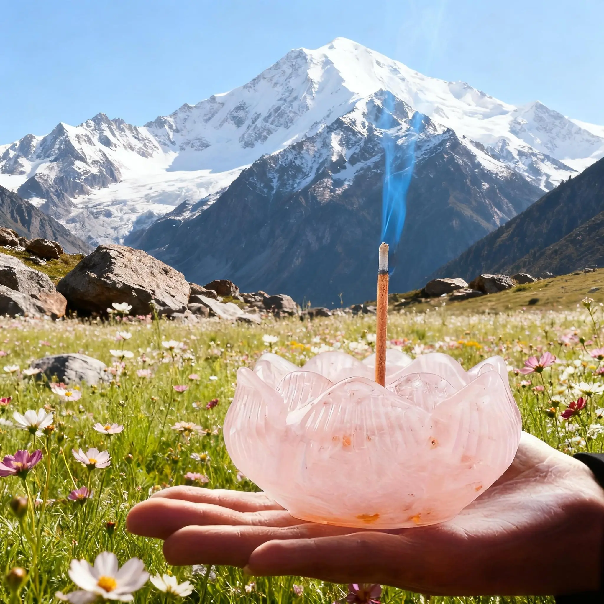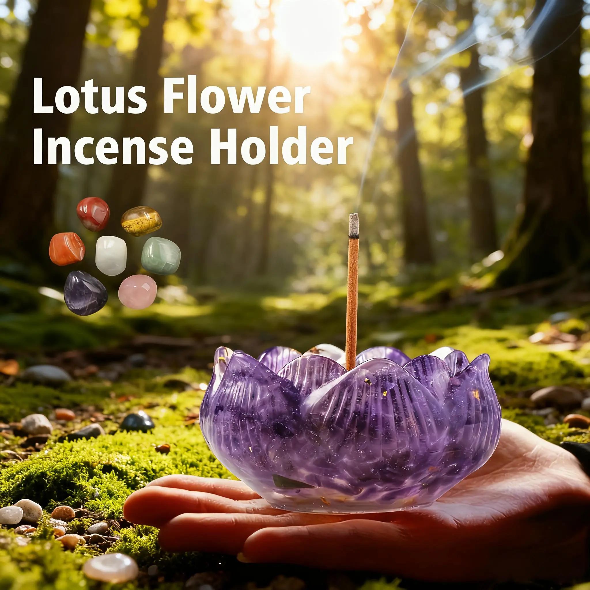 Each incense burner is handcrafted from high-quality resin, infused with natural amethyst or rose quartz crystals, creating a stunning lotus flower design. The translucent, gem-like finish catches light beautifully, adding a mystical, bohemian vibe to any space.
