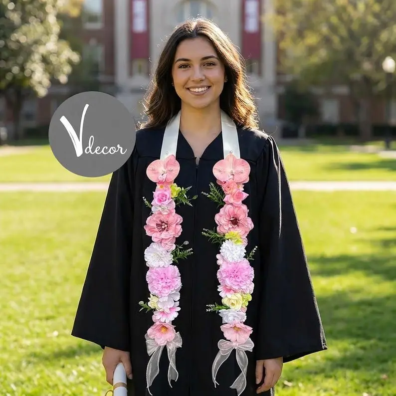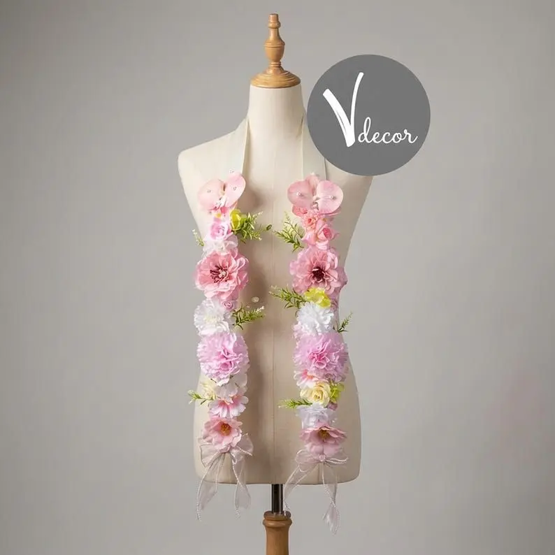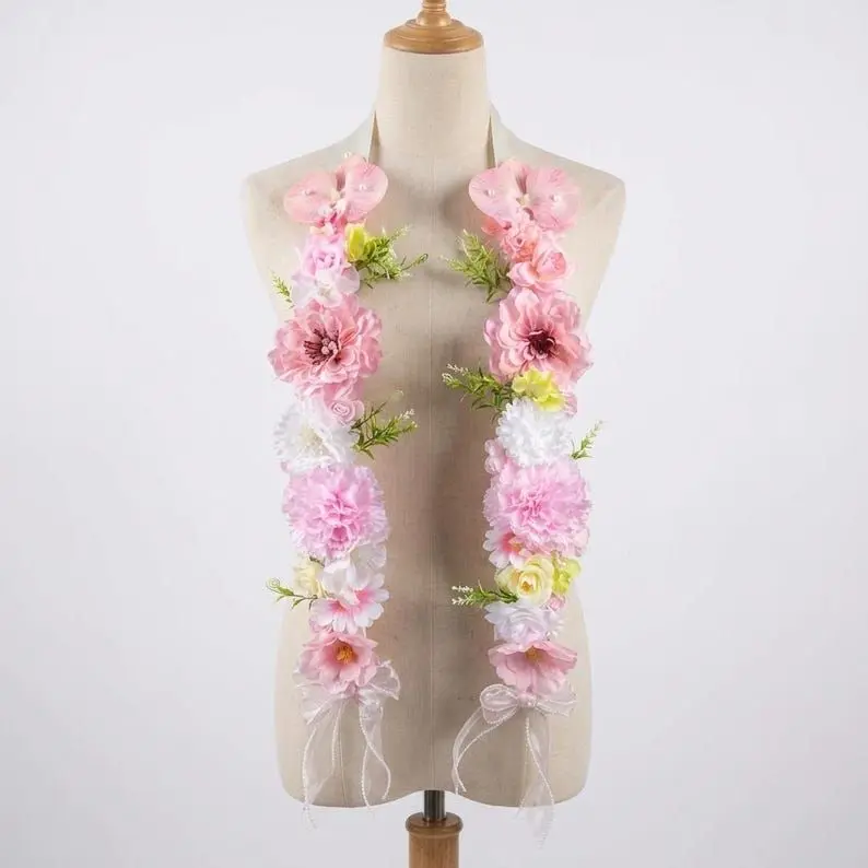 Handmade Pastel Floral Graduation Stole, Romantic Flower Lei Sash, Class of 2026 Grad Accessory, Senior Photo Prop Gift Bloom Floral Graduation Stole