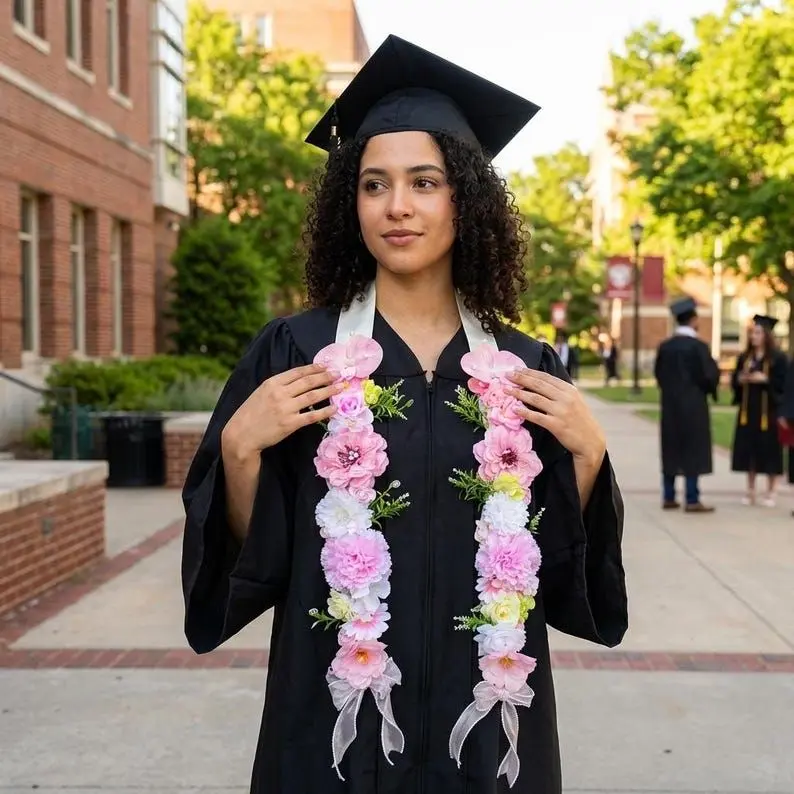 Make your graduation day unforgettable! Skip the plain fabric stoles and stand out in your ceremony photos with our handcrafted Bloom Floral Graduation Stole. Perfect for high school and college seniors looking for a unique, tropical, or boho-inspired look.