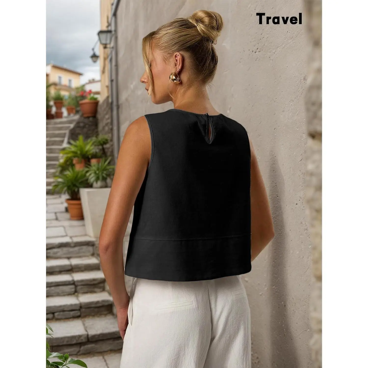 Linen Look Open Back Top
