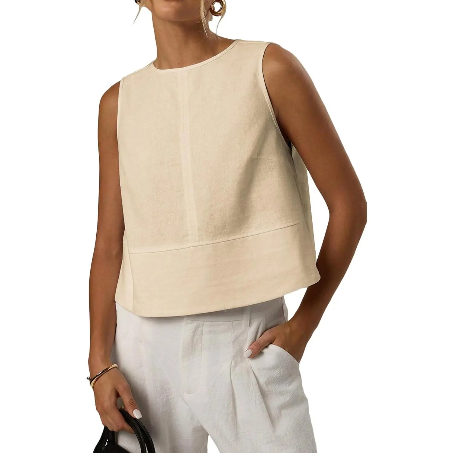 Mina Self 2025 Womens Linen Crop Tank Tops Summer Sleeveless Loose Comfy