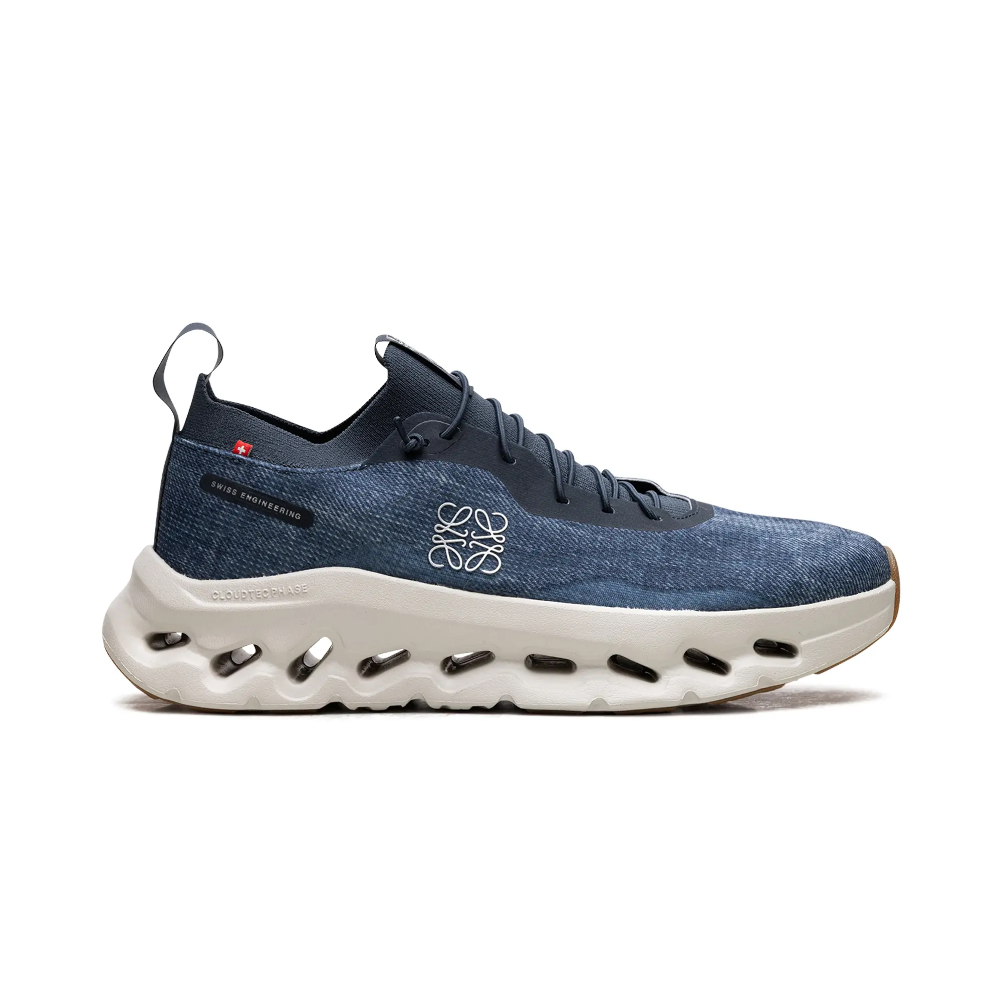 Redefine your lifestyle rotation with the On Cloudtilt "Loewe - Denim Blue," a high-fashion collaboration that reinterprets Swiss engineering through the artisanal lens of the Spanish luxury house. Featuring a premium knit upper in a deep "Denim Blue" with a subtle gradient effect, the design is defined by its sleek, sock-like anatomical profile and a speed-lacing system for effortless utility. Grounded by a sculpted CloudTec Phase® midsole that provides sequential cushioning for a smooth heel-to-toe transition, this release successfully pairs Loewe’s sophisticated aesthetic with On’s performance-driven technology for elite daily comfort.