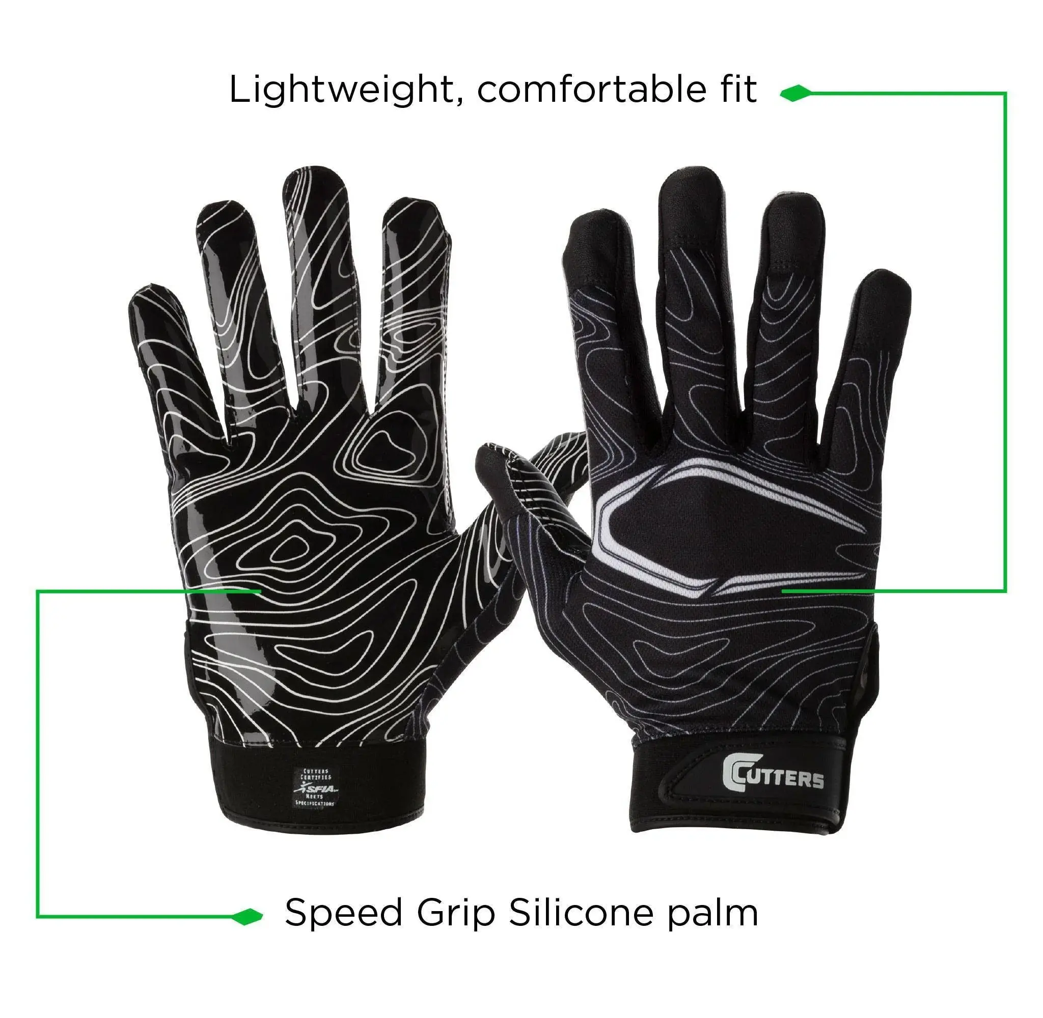 Cutters Game Day Receiver Youth Sports Gloves - Black Topo L/XL