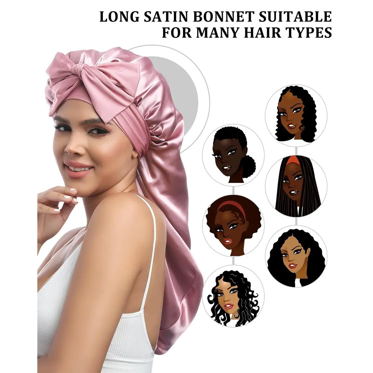[Suitable for long hair] - women's long hat has 2 long elastic bands, which can fix the satin hat and better fit the head; The sleeping cap is long enough to accommodate long hair, which is very suitable for people with long hair.