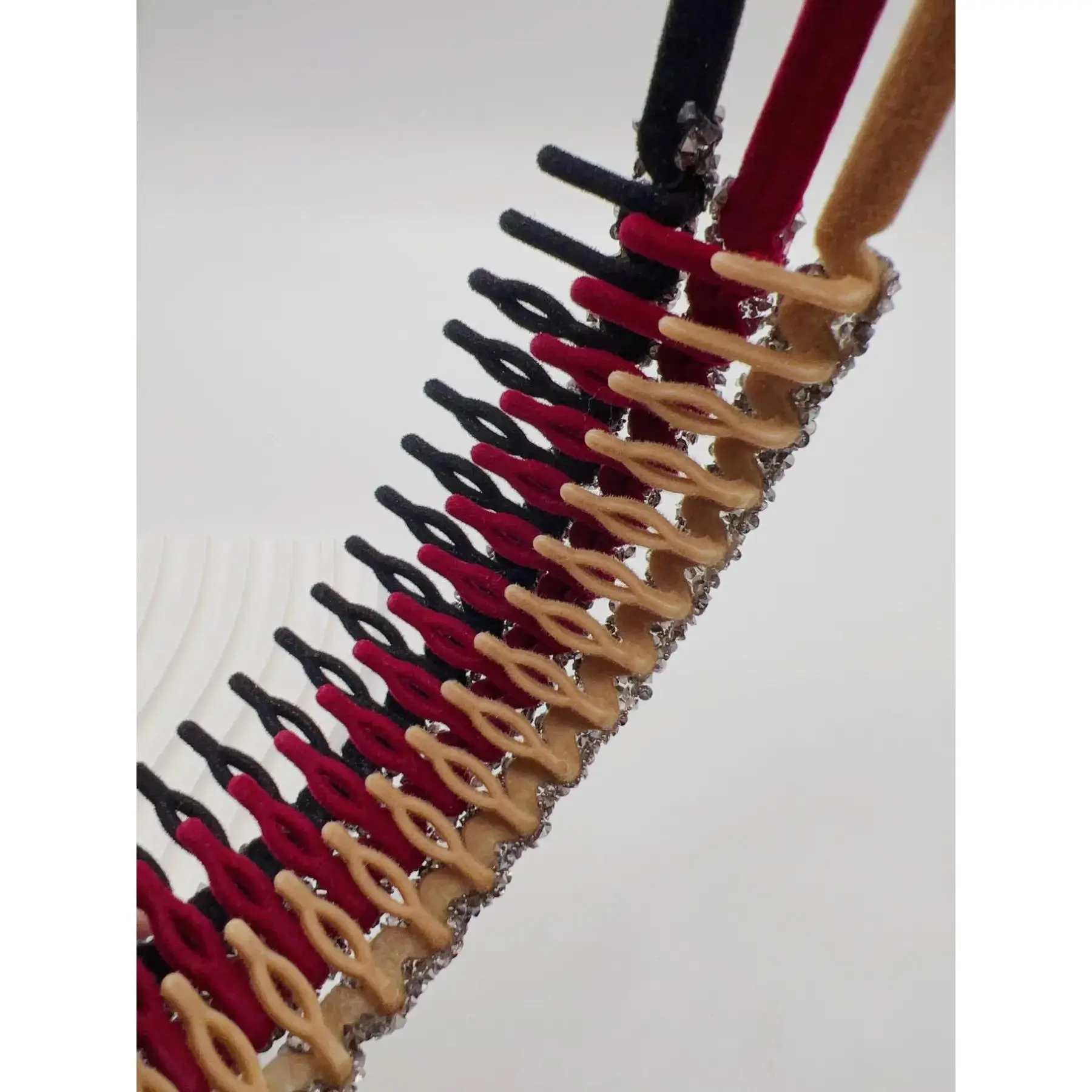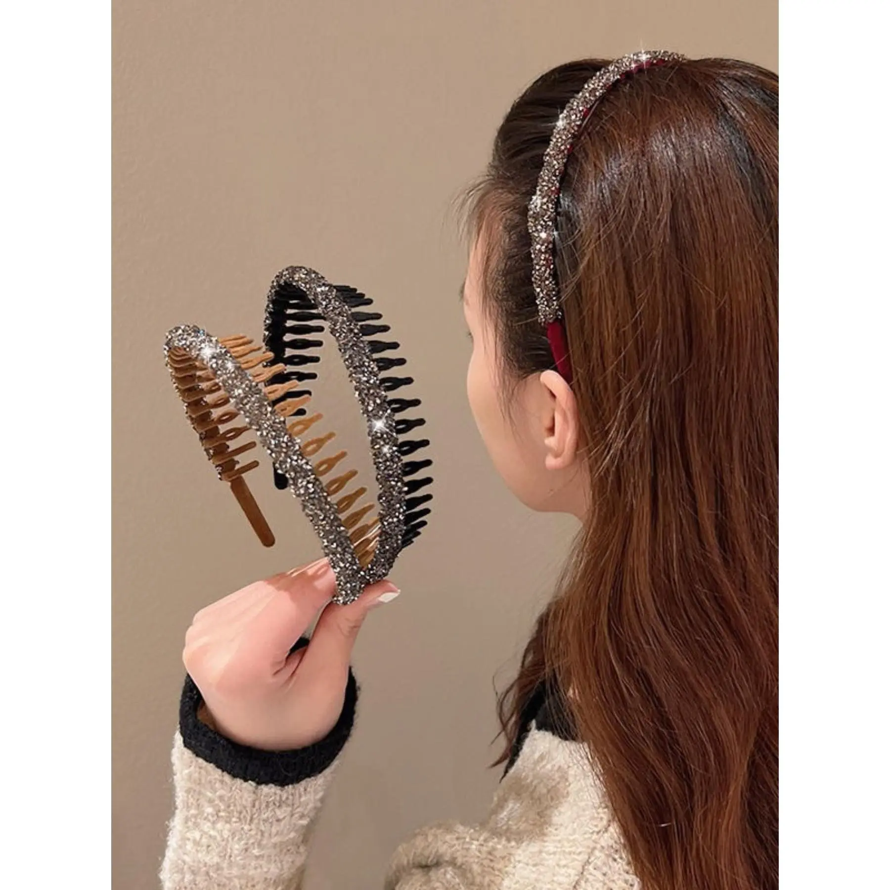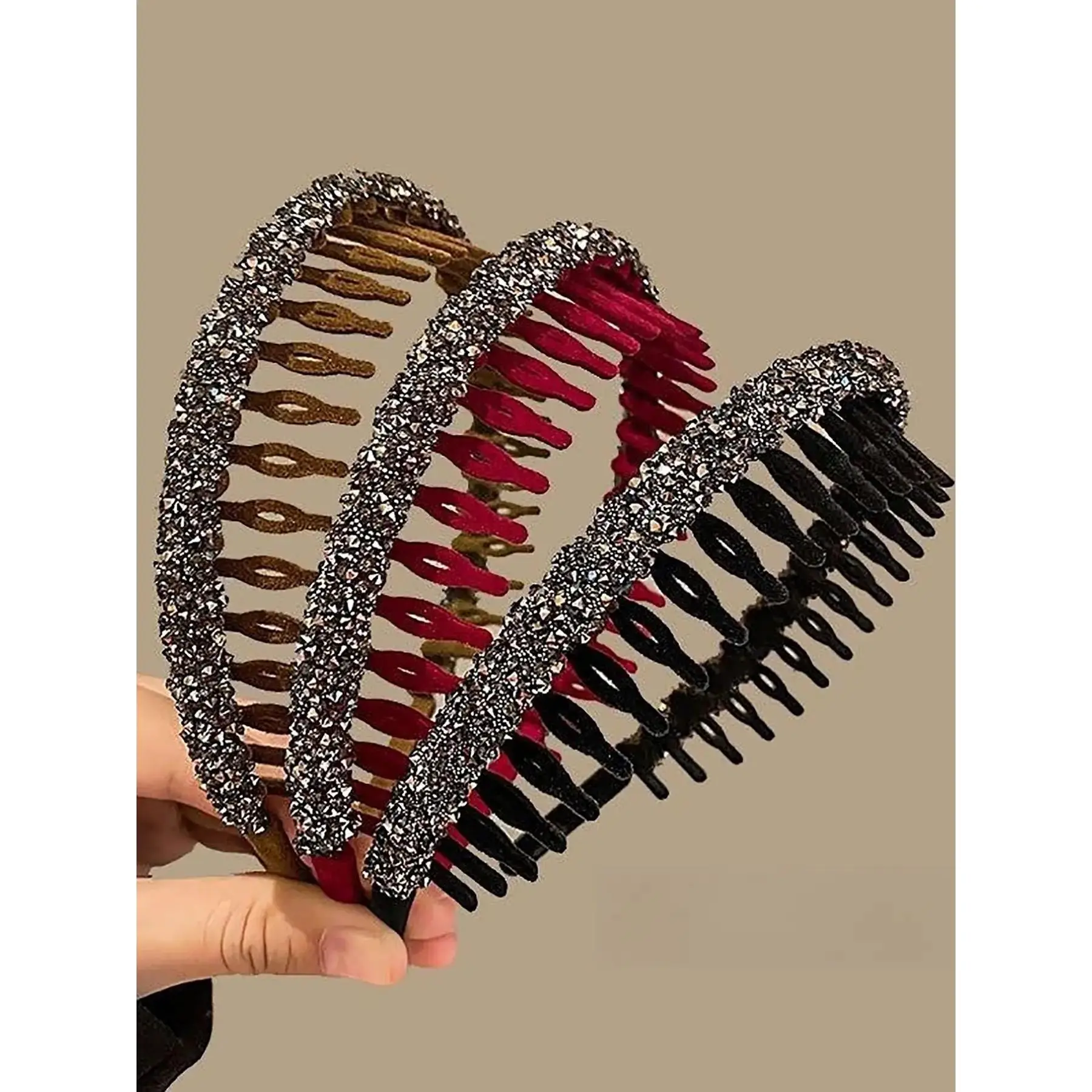 3pcs Flocked Rhinestone Decorated Hair Hoop, Comb Design Anti Slip Headband, Casual Hair Accessories For Women & Girls, Bling Hair Headband