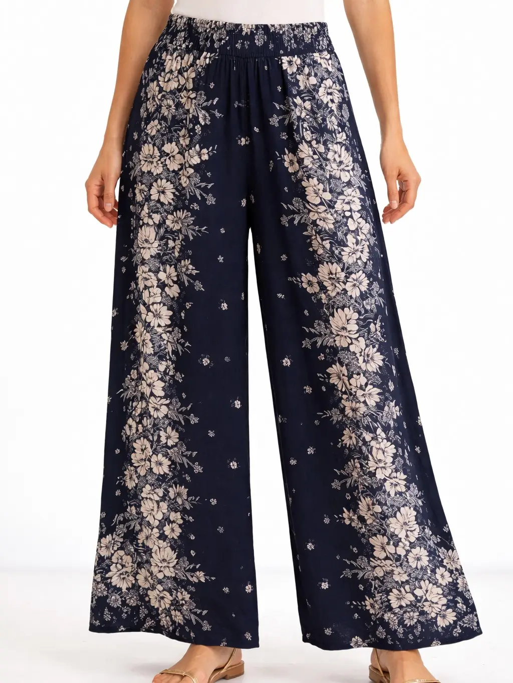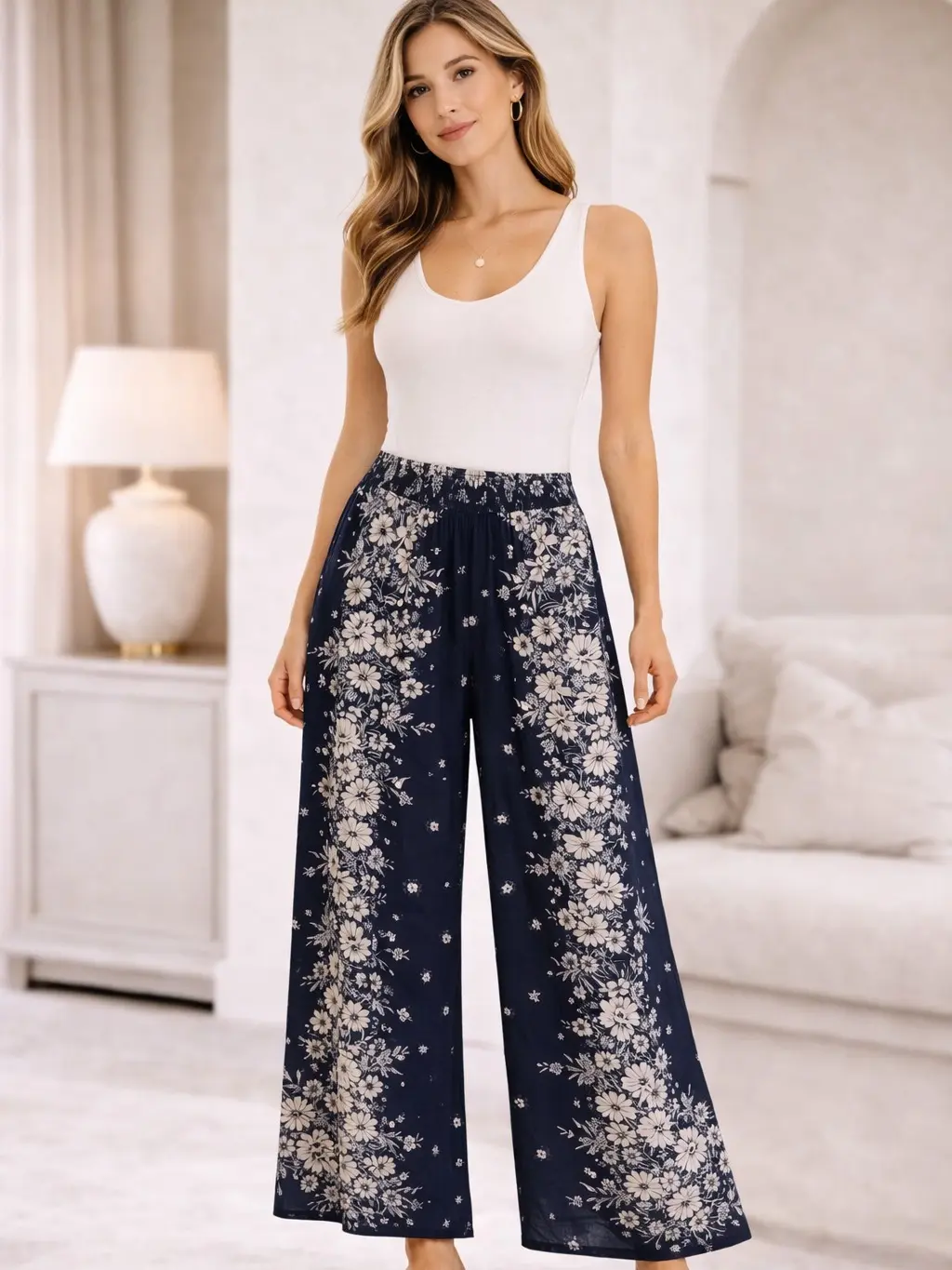 Light, flowy, and easy to wear, these navy floral wide leg pants bring a relaxed boho feel to everyday dressing. Designed with a soft elastic waistband, full-length silhouette, and an airy drape, they combine comfort with standout floral print for a look that feels effortless, feminine, and easy to style.