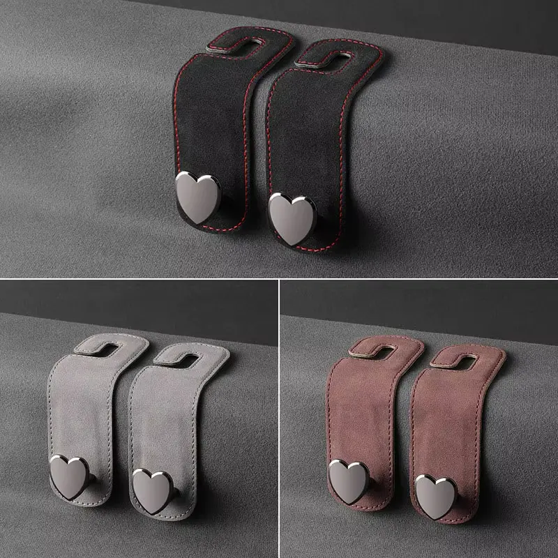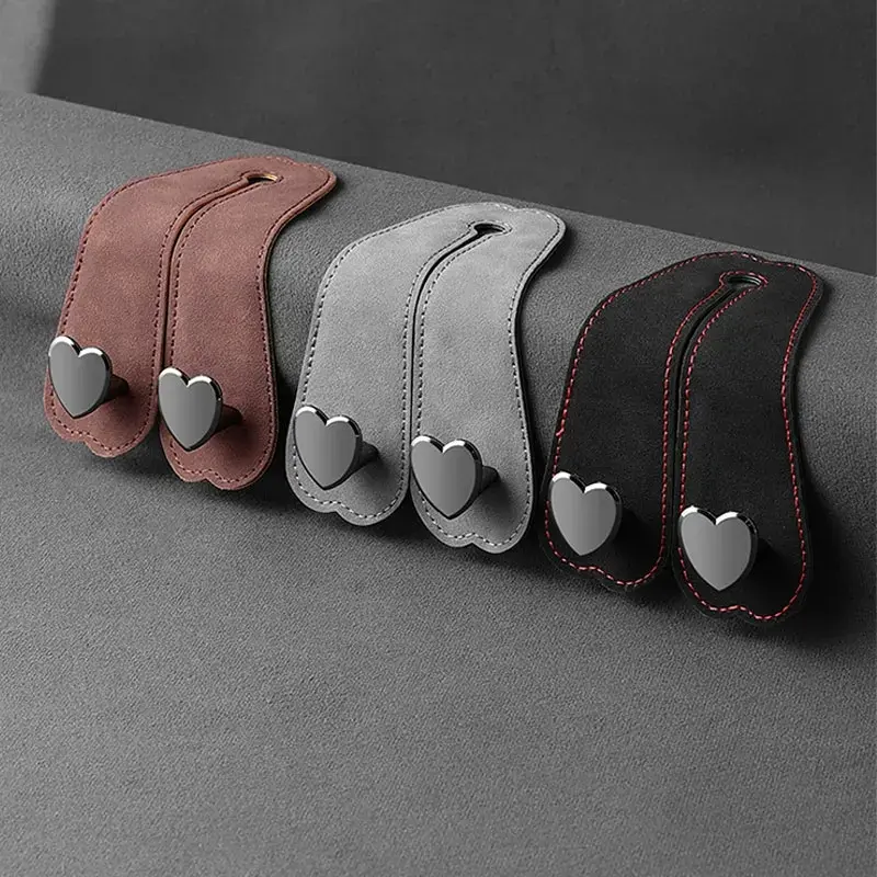 Heart Shape Metal Car Seat Headrest Hooks 2 in 1 Leather Car Seat Back Hook Purse and Bag Backpack Double Hook Car Seat Hanger Backseat Hanging Organizer Car Storage Organizer