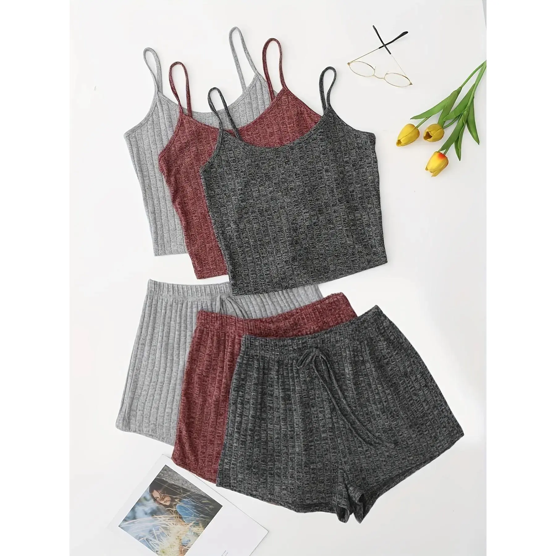 Women's Plain Knitted Stretchy Crop Cami Top & Tie Front Shorts Set, Summer Clothes, Casual Camisole & Shorts Set for Summer, Women's Clothes