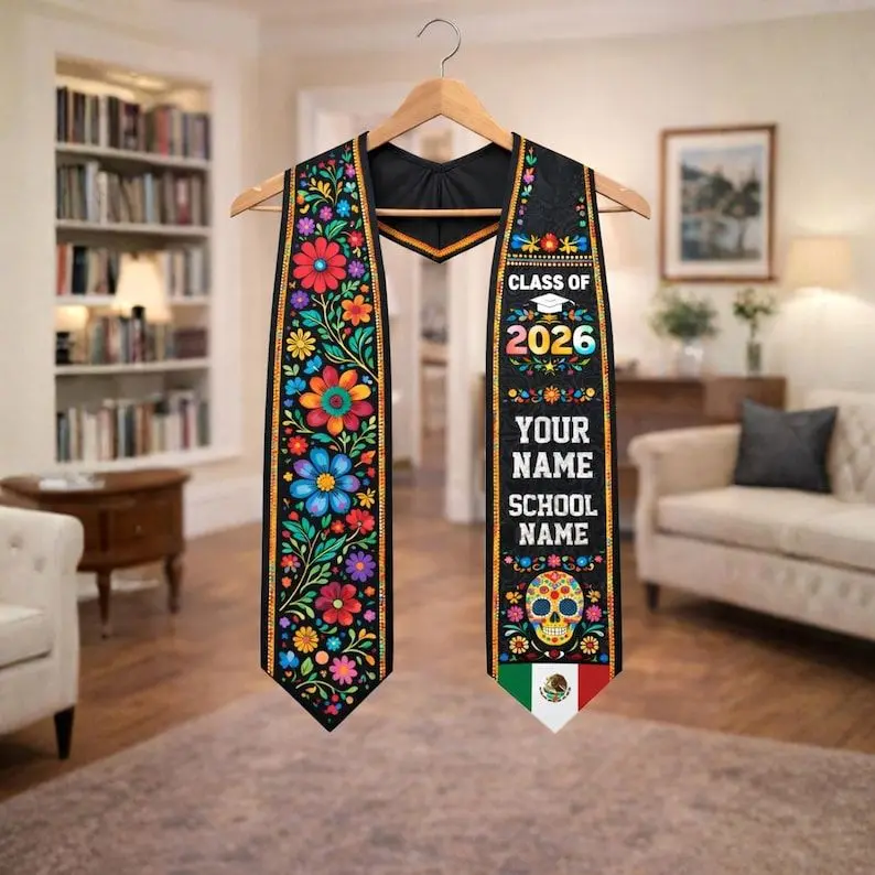Custom Mexico Graduation Sash, Personalized Mexican Flag Grad Stole, Serape Style Graduation Sash for Senior Graduation Ceremony Graduation Stole
