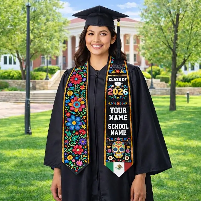 5. Custom Mexico Graduation Sash, Personalized Mexican Flag Grad Stole, Serape Style Graduation Sash for Senior Graduation Ceremony Graduation Stole
