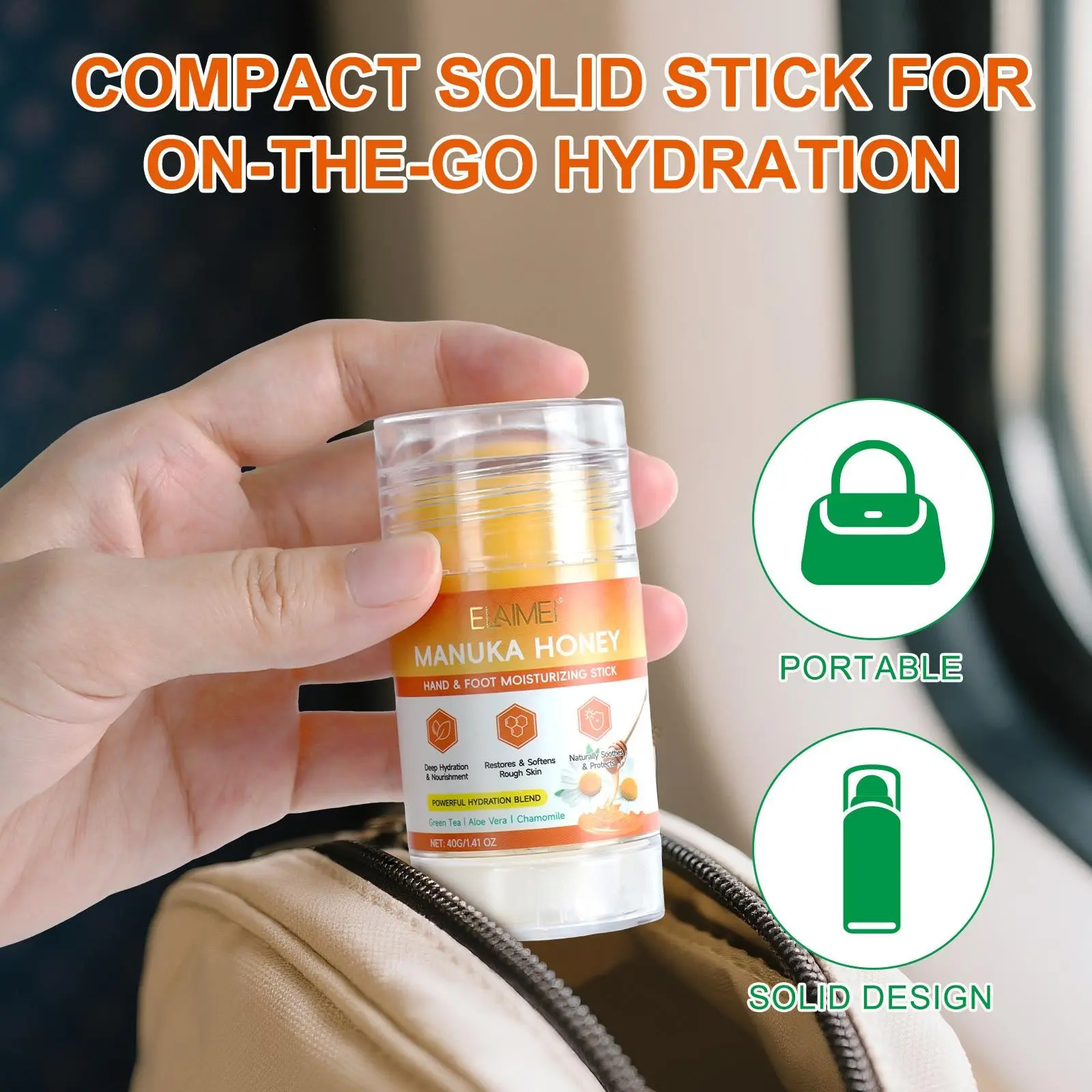 ELAIMEI Manuka Honey Skin Care Stick is designed for dry, cracked skin, providing intense hydration and soothing dryness. It is ideal for dry, flaky areas such as elbows, hands, and feet, delivering visible, rapid moisturization.