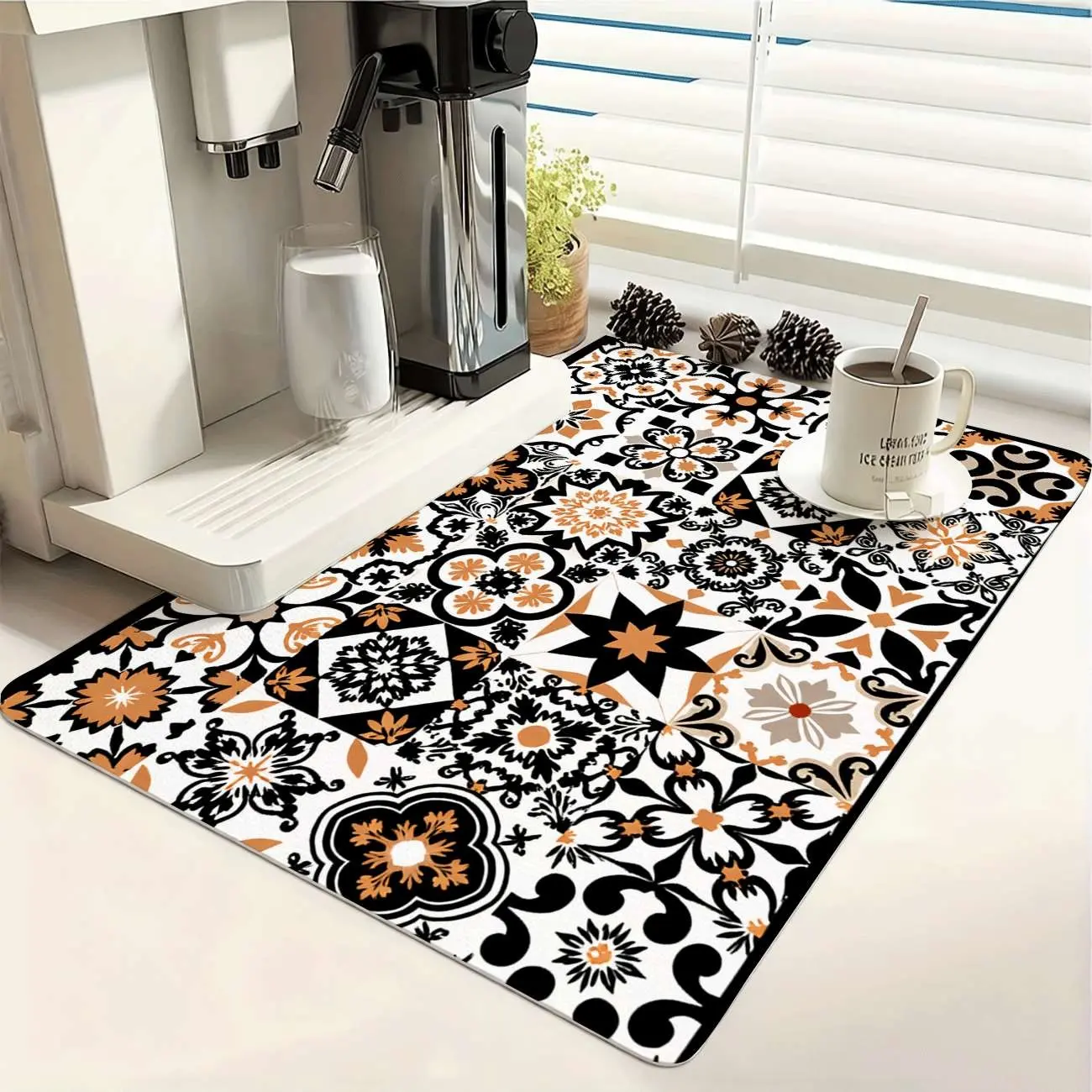 Multi-Functional Table Mat, Floral Grid Print Rubber Coaster, Easy Clean, Water Absorbent, Non-Slip, Durable, Ideal for Kitchen and Bedroom