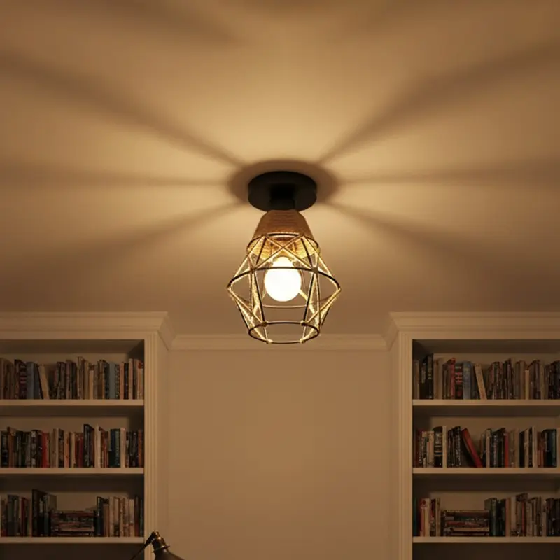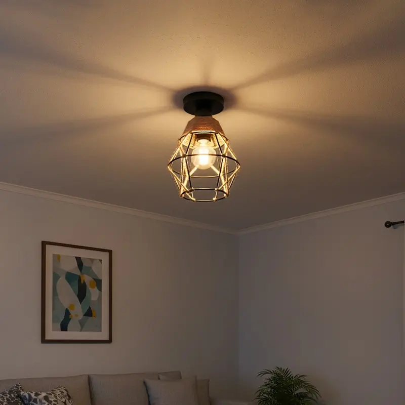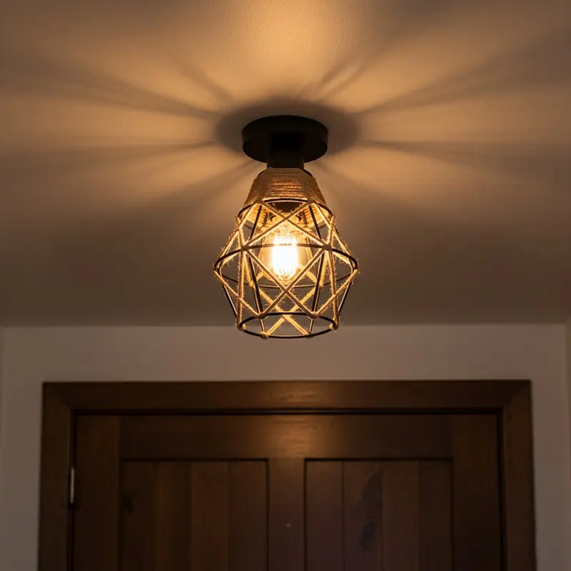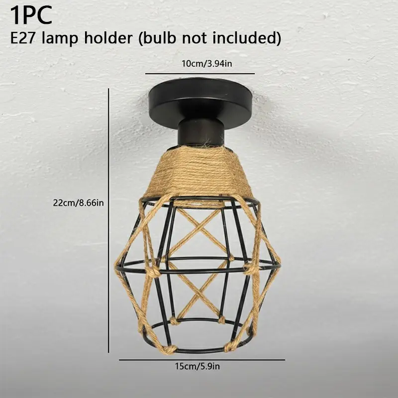 Hemp Rope Ceiling Light, Embedded Ceiling Lamp, E27 Socket, Hardwired, Rustic Metal Fixture, for Entryway, Hallway, Kitchen, Bedroom, Study